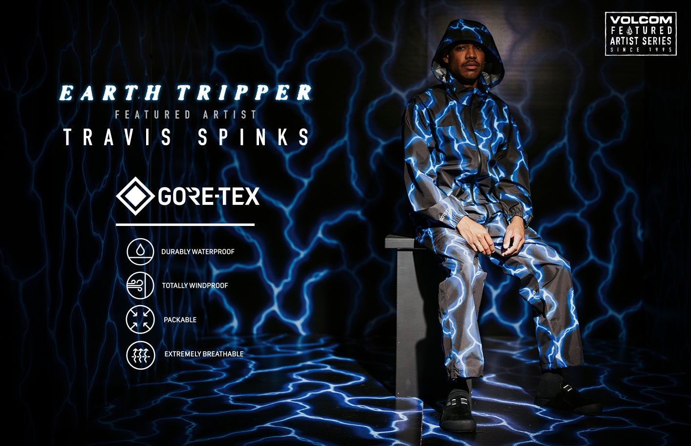 サーファーのフィールドのひとつであるビーチはもちろん、キャンプ、トレイルラン、ゴルフ、マウンテンバイクなどあらゆるアウトドアシーンに適応する世界最先端技術を駆使して生み出された新素材VOLCOM V.CO TECHと、他の追従を許さないずば抜けた着心地の良さと機能性の高さでスノーボードウェアに革命を起こしたGORE-TEXを採用し、そこにフィーチャード・アーティストとしてトラビス・スパンクスのデザインを落とし込んだ注目の機能性プロダクト”Earth Tripper”コレクションがVOLCOMよりリリースされた!