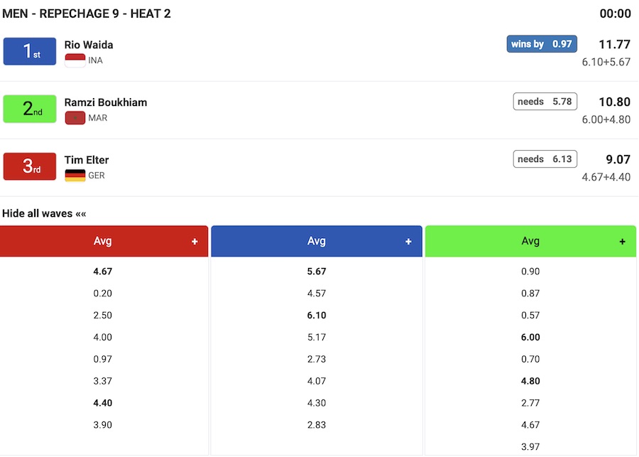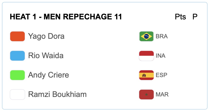 和井田理央のパリオリンピック出場権獲得の最低条件は、リパチャージラウンド9のヒート1でSebastian Williams(MEX)が敗退した時点で、和井田理央がリパチャージラウンド9進出となり、見事これをクリアする形となった!