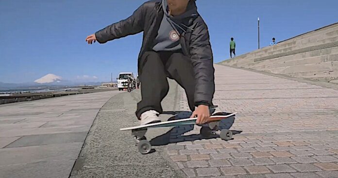 そんな彼が地元湘南の波のない日に自然と手にするのが、サーフィンの陸上イメトレに最適なスケートボードである。