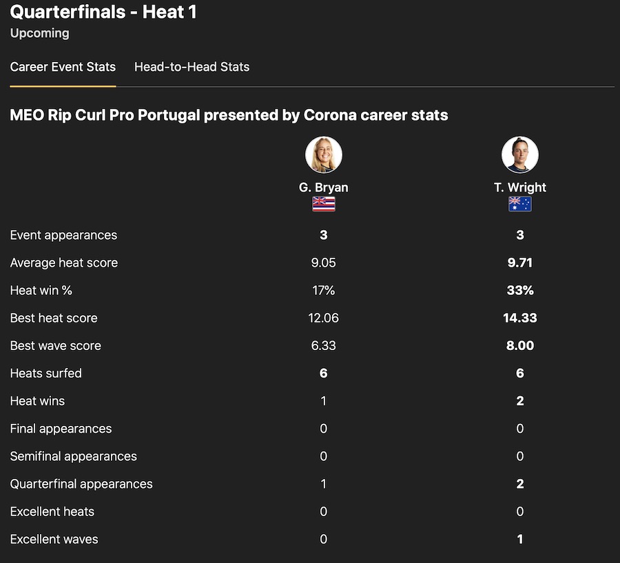 WOMENSクォーターファイナルのヒート表は下記の通り。