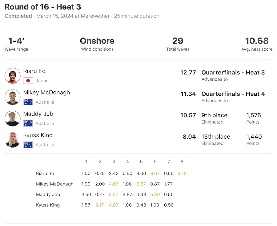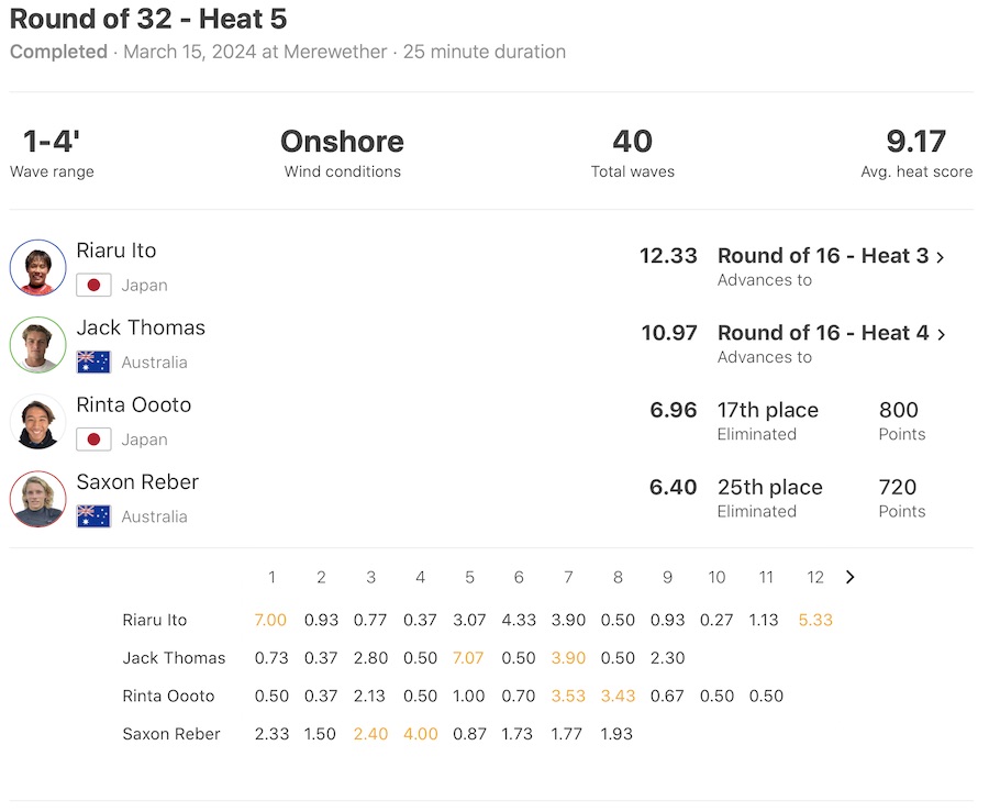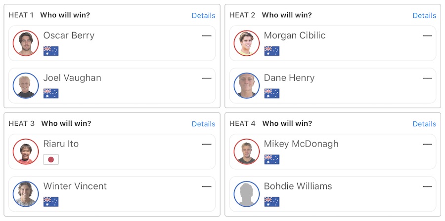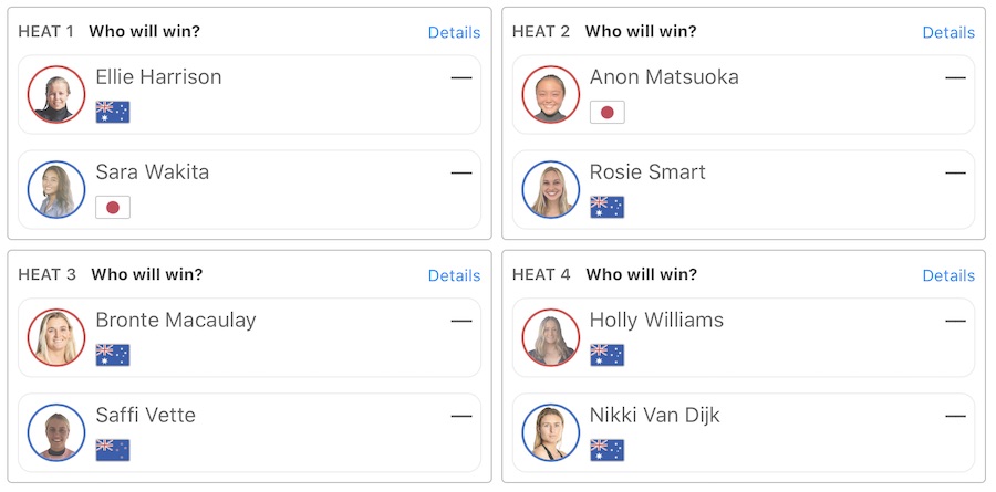 迎えるクォーターファイナルでのヒート表は下記の通り。