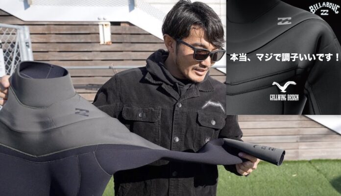 動画で田中英義プロがお伝えしているように、伸縮性が非常に高いBILLABONG最新マテリアルが採用されていることから、吊るしの既製品サイズであっても十分とのこと。(colorsmag的既製品サイズの吊るしを買うときのコツは、ぶかぶかの大きいウエットスーツほど無意味になるので、伸縮率の高さを念頭において自分の体より少し小さめサイズくらいのものを選ぶのがオススメ。)