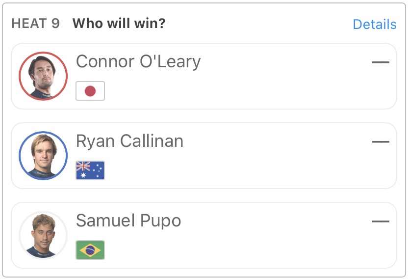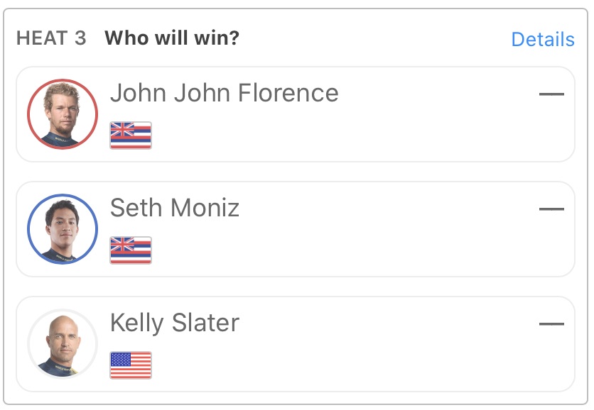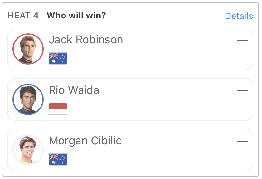 ヒート3でJohn John Florence、Seth Monizと対戦することとなっており、ファンにとっては見逃せない1戦となっている。