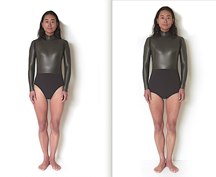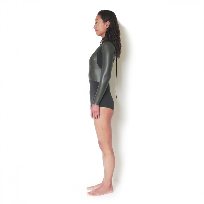 フルスーツ同様ハイウエストをベースに上半身は2mmのラバー、ボトムは2mmのジャージ素材で構成され、カスタムオーダーであれば全身ジャージ素材にすることも可能となっている。