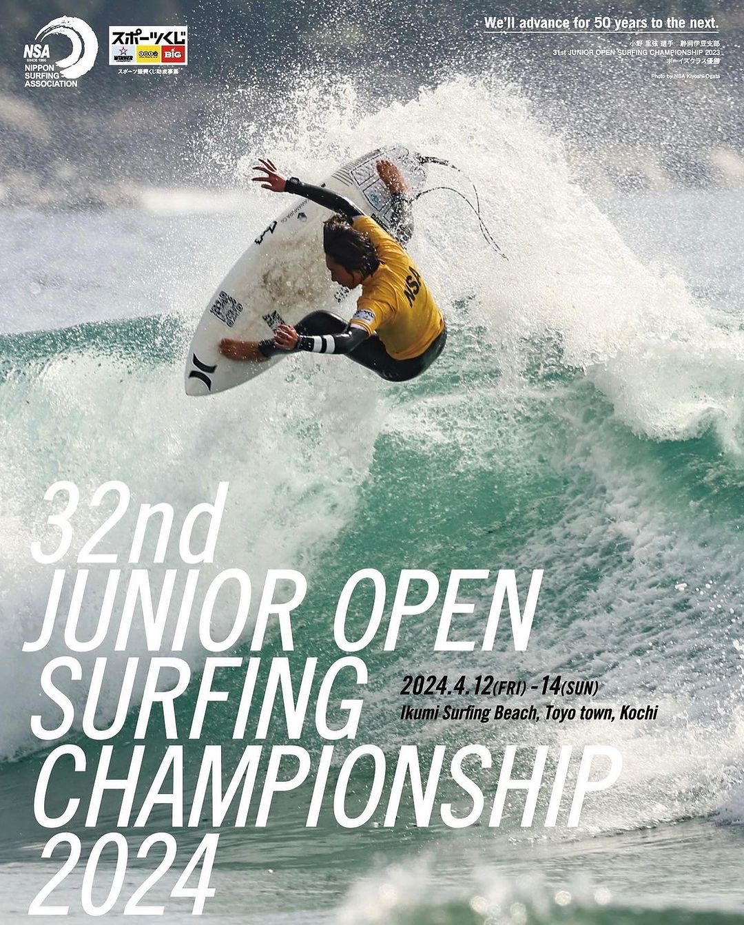 4/12(金)から4/14(日)に渡り、四国の生見海岸を会場にNSA主催の第32回ジュニアオープンサーフィン選手権大会が行なわれた。