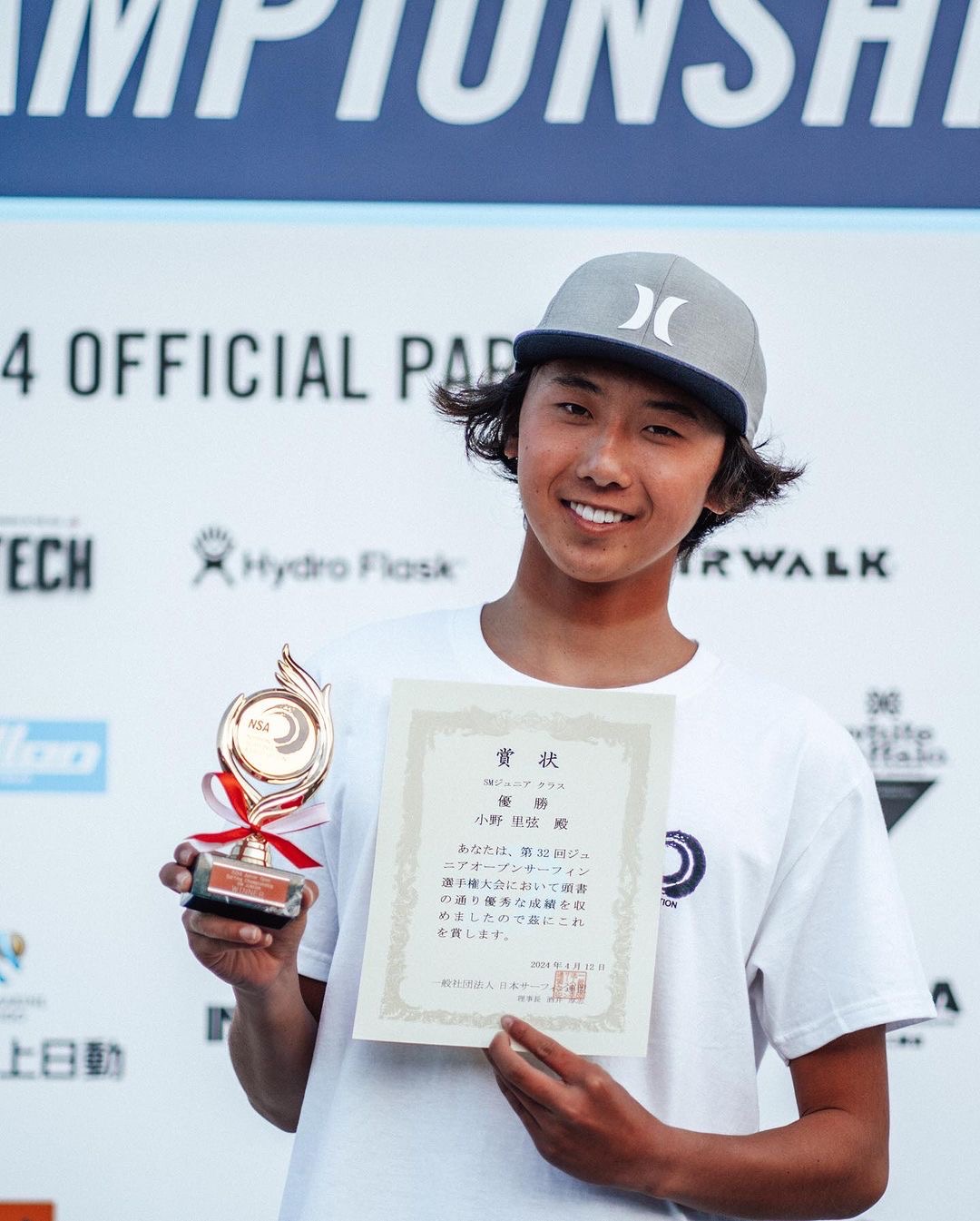 そんな中、注目の18歳以下男子ジュニアチャンプに輝いたのは同世代のプロサーファーを抑えて昨年に引き続き2連覇となった小野里弦!