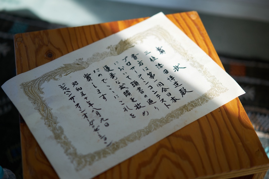 H:ここにそのときの賞状がありますけど、昭和50年っていうと、1975年だね。JSOの大会で3位になって。
