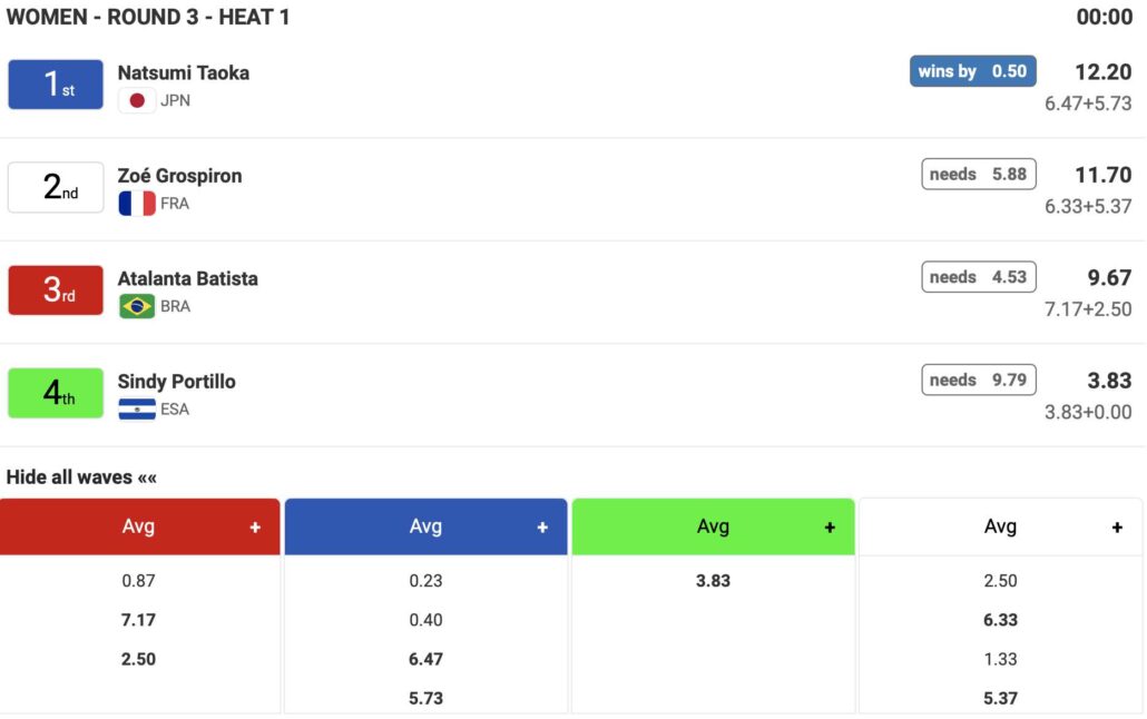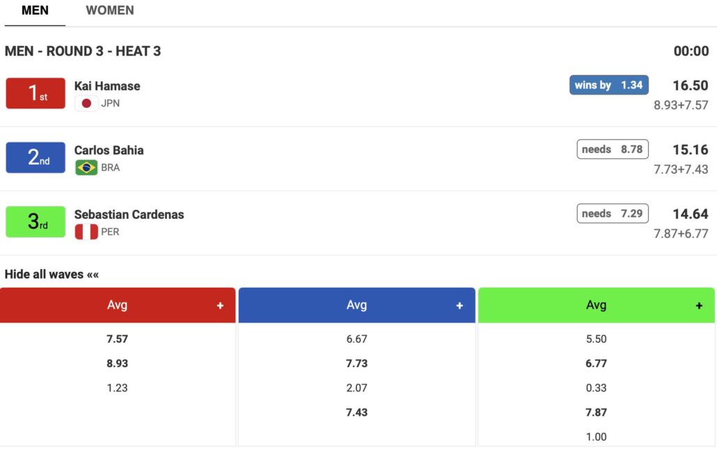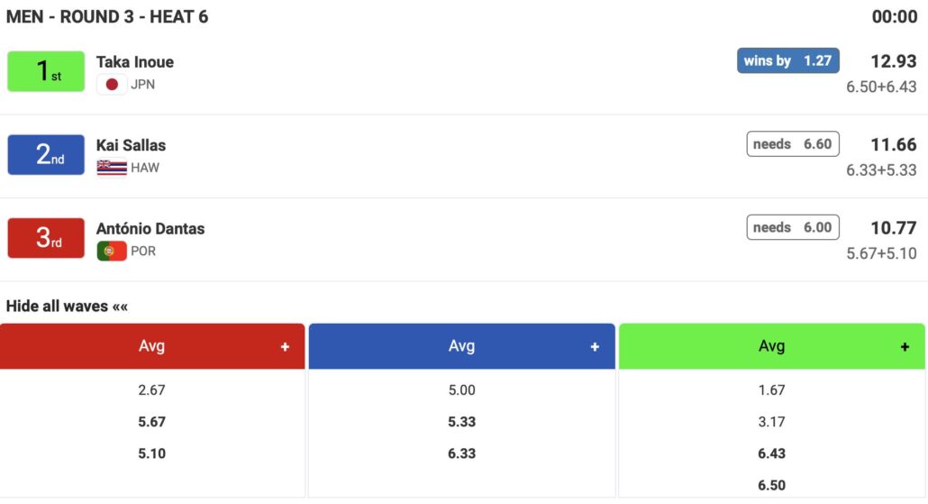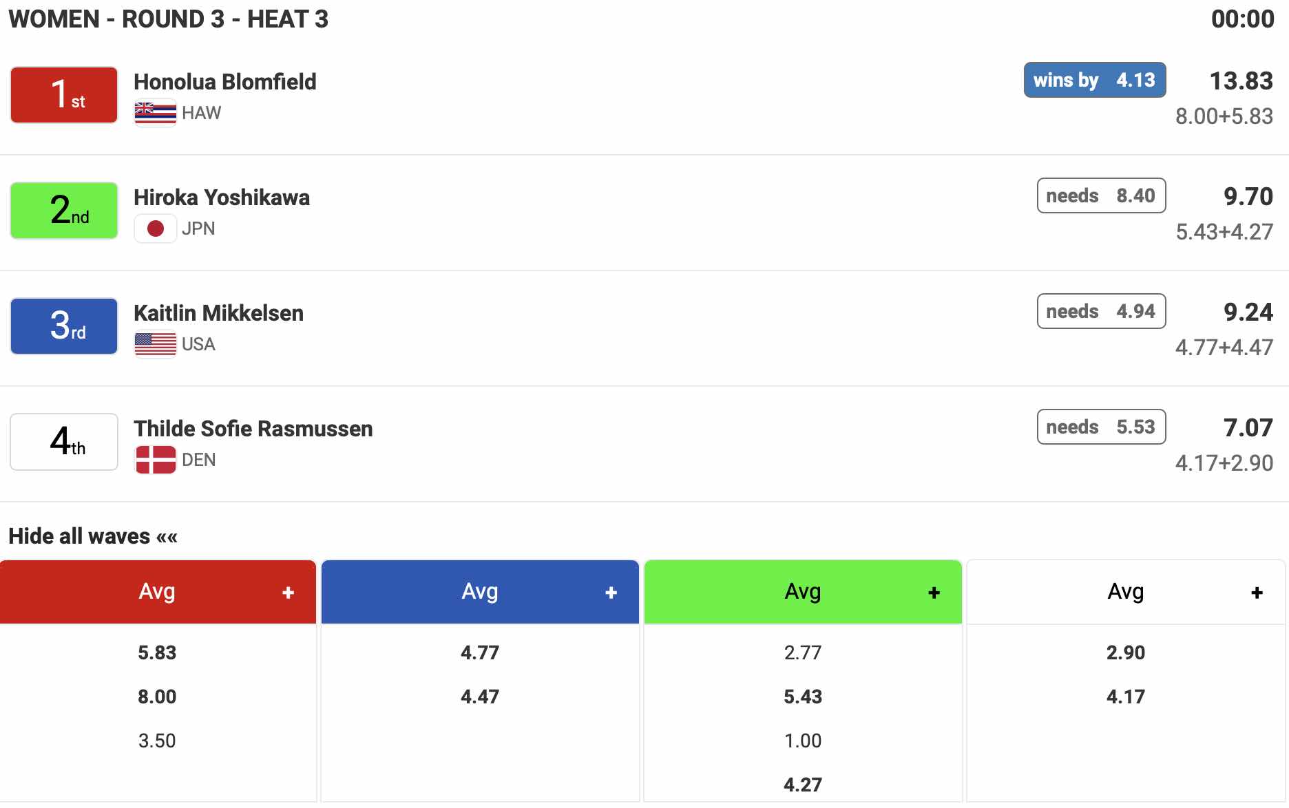サイズのある波でもメンバー全員が世界トップレベルのパフォーマンスでハイスコアをマークし、順調に勝ち上がっている。
