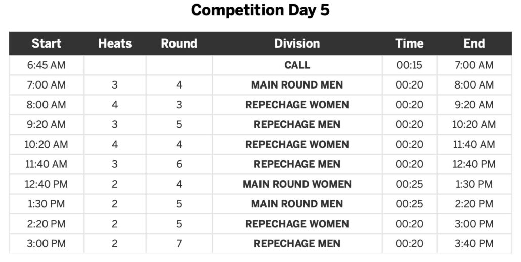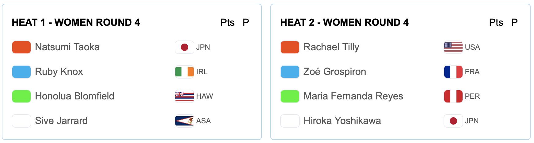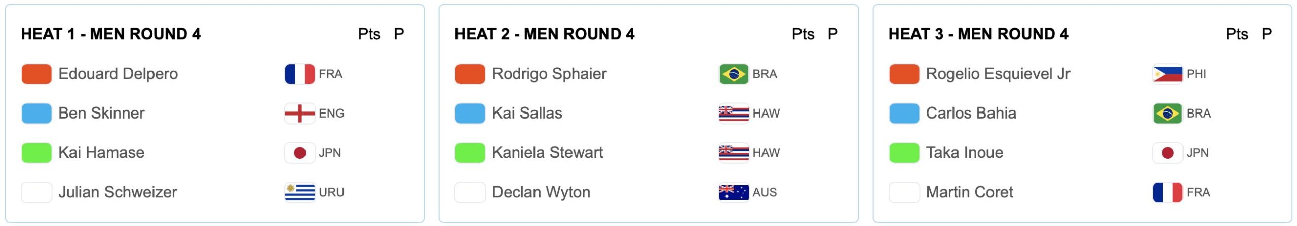 迎えるコンテストDAY5のスケジュールと、メインラウンド4の日本代表波乗りジャパンたちのヒート表は下記の通り。