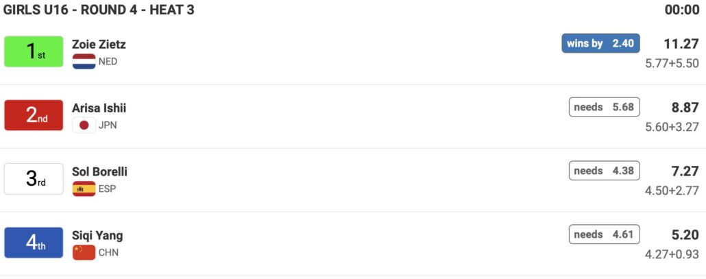 メインラウンドを勝ち進む選手は2名、リパチャージラウンドで敗者復活を狙う選手が8名と、総勢10名が勝ち残っている若き波乗りジャパンのメンバーたち。