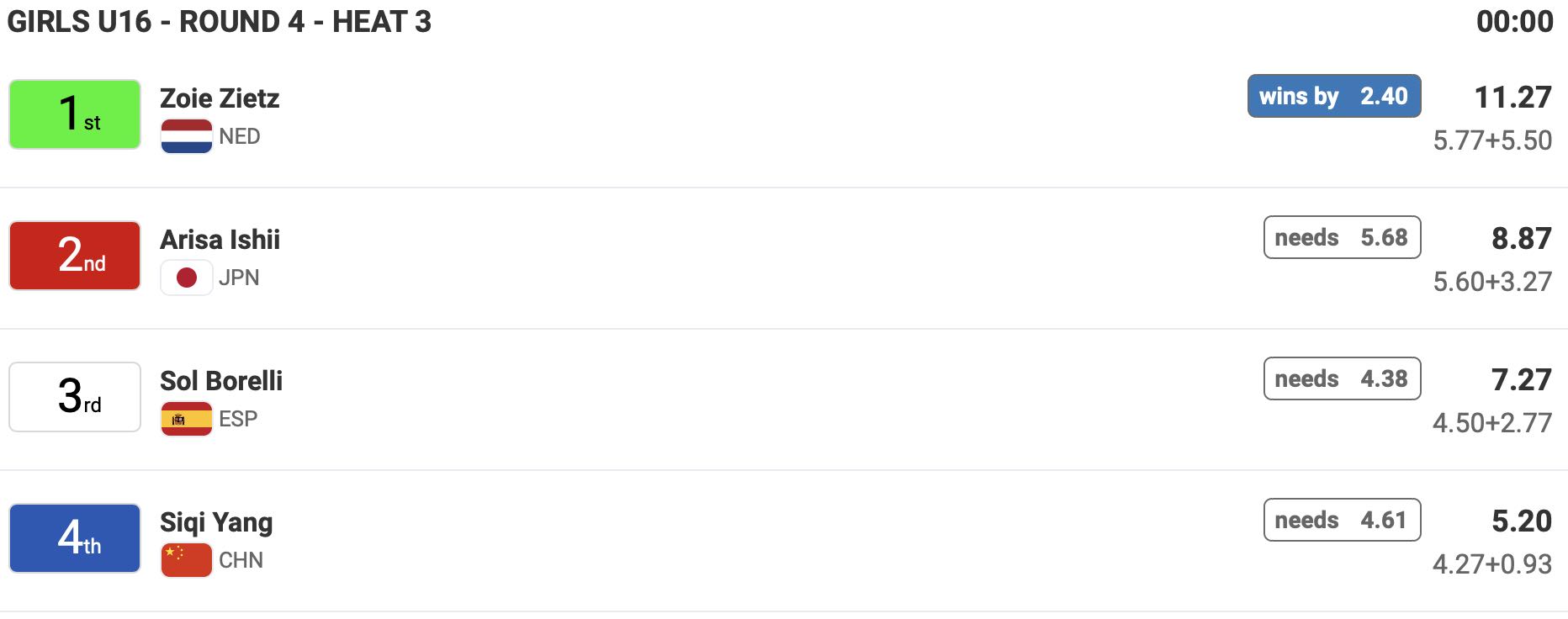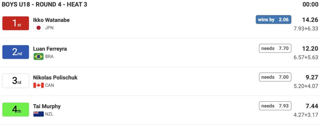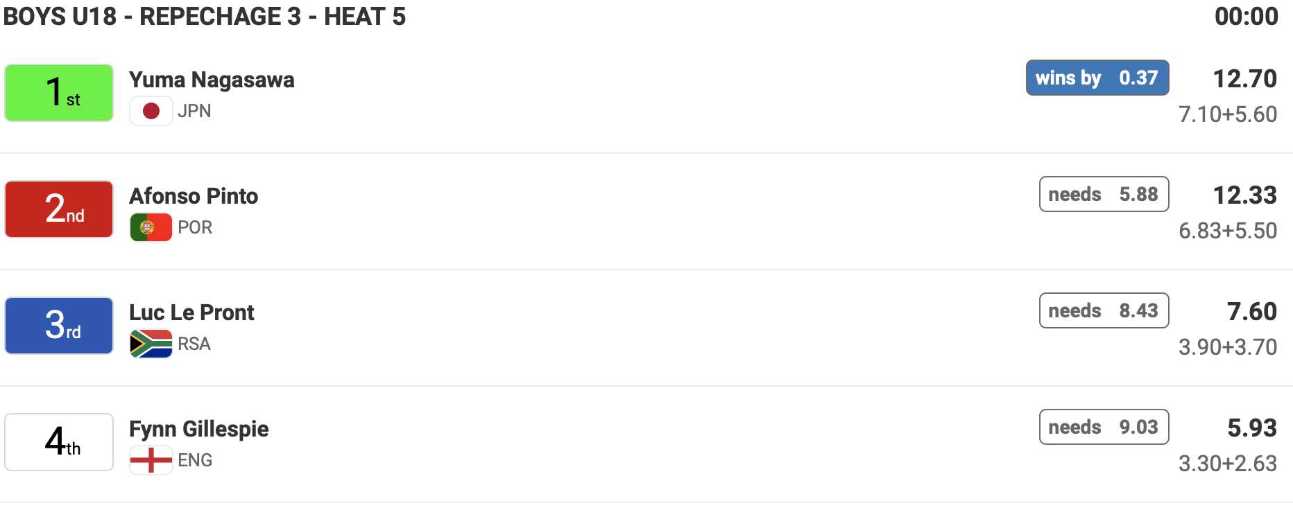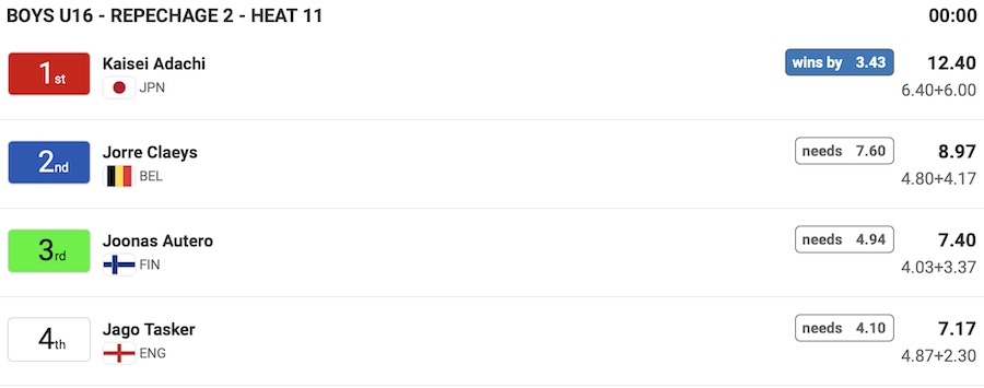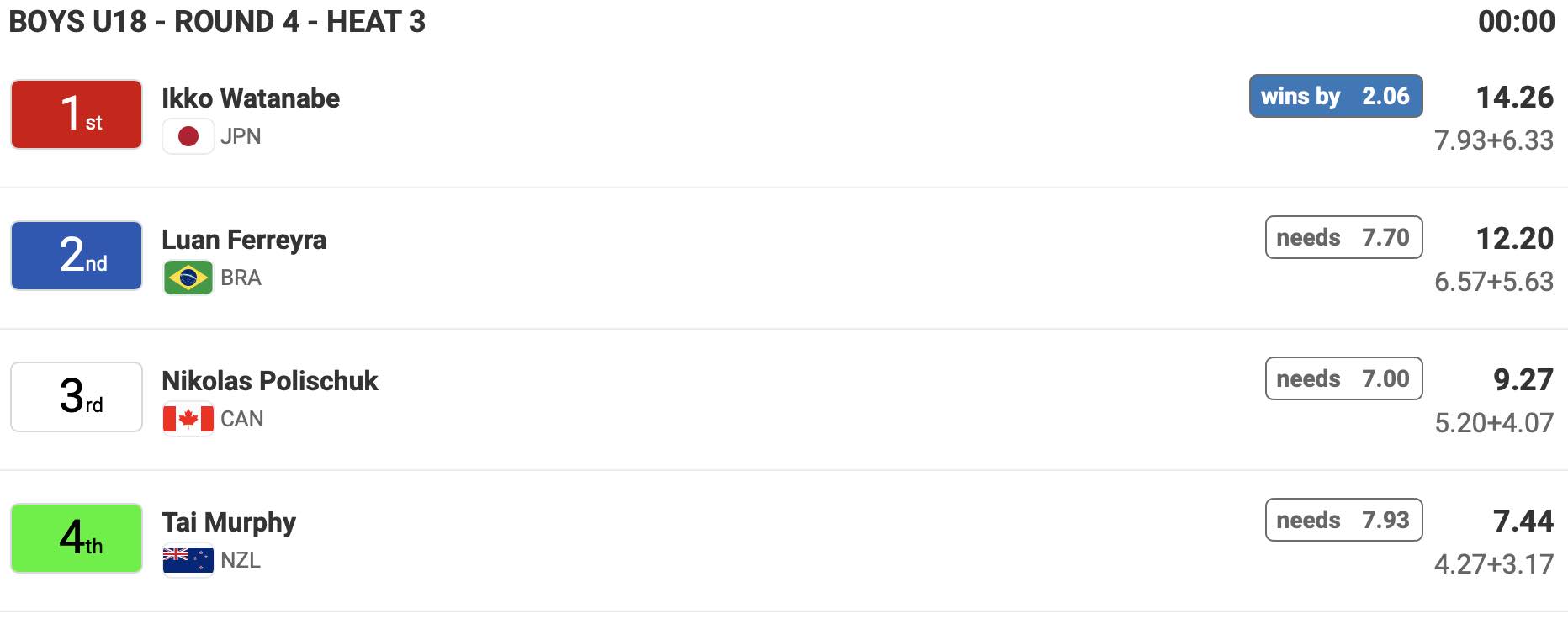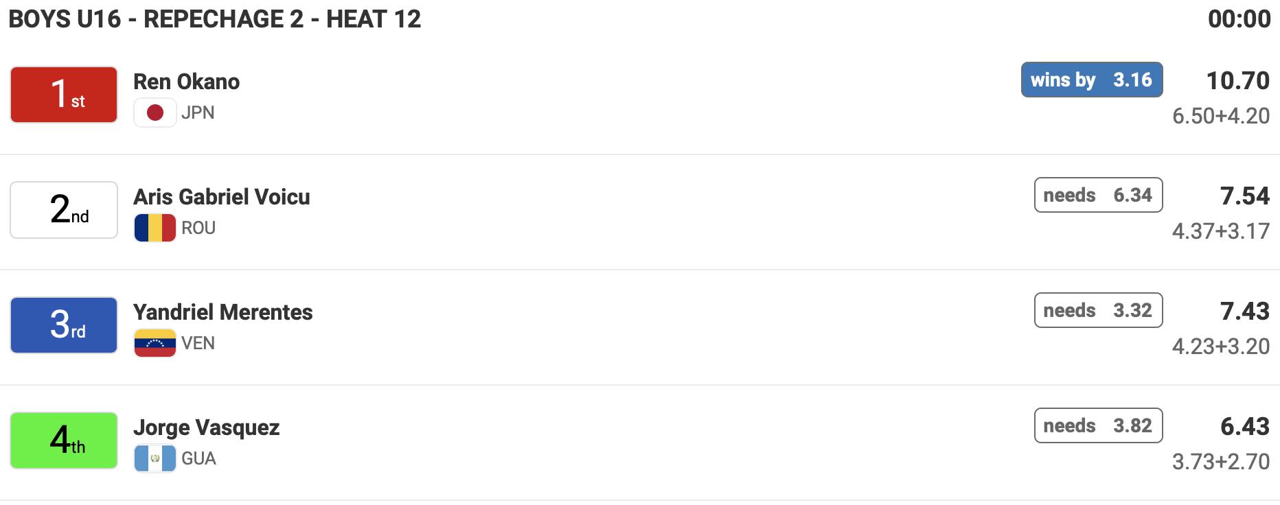男子18歳以下Boys U-18では長沢侑磨がリパチャージ・ラウンド3を勝ち上がった中、この日の前日であるコンテストDay5に行われたリパチャージラウンド2で小野里弦が敗退となってしまった。