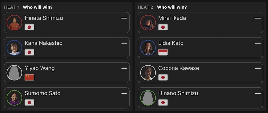 注目の日本人選手たちの活躍は、MENSで佐藤理希、酒井仙太郎、白井翔、金沢太規、WOMENSでは中塩佳那、川瀬心那、池田美来、佐藤季、清水ひなの&ひなたがセミファイナル進出を決めた!