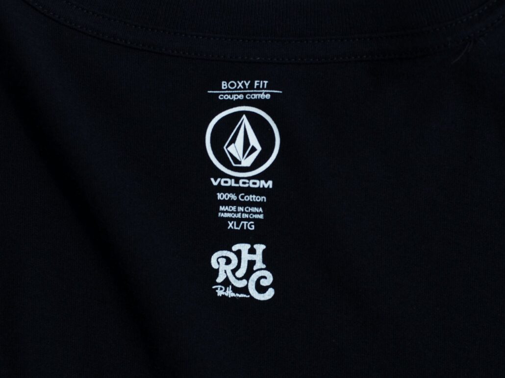 さらに首元にはVOLCOMとRHCのダブルネームが入ったスペシャルネームプリントが施され、本コレクションの特別感が落とし込まれている。