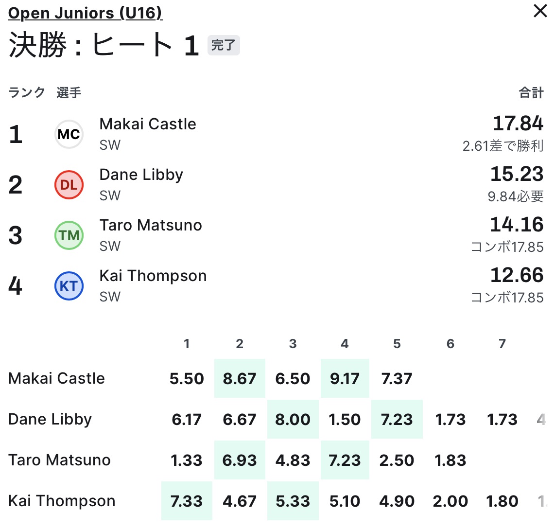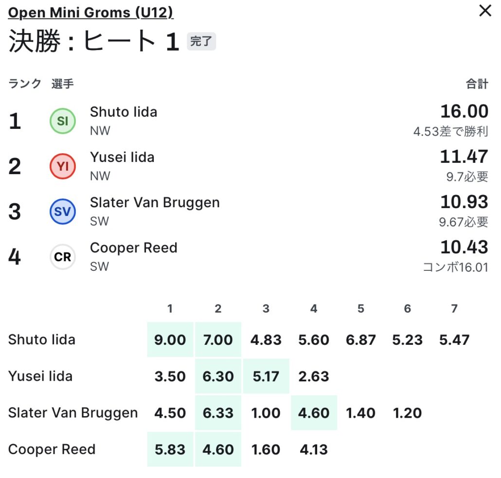 そんな中、ハンティントンで開催された2024 NSSA WEST COAST CHAMPIONSHIPSのOPEN MINI GROMS(12歳以下)クラスで飯田翔斗が優勝!