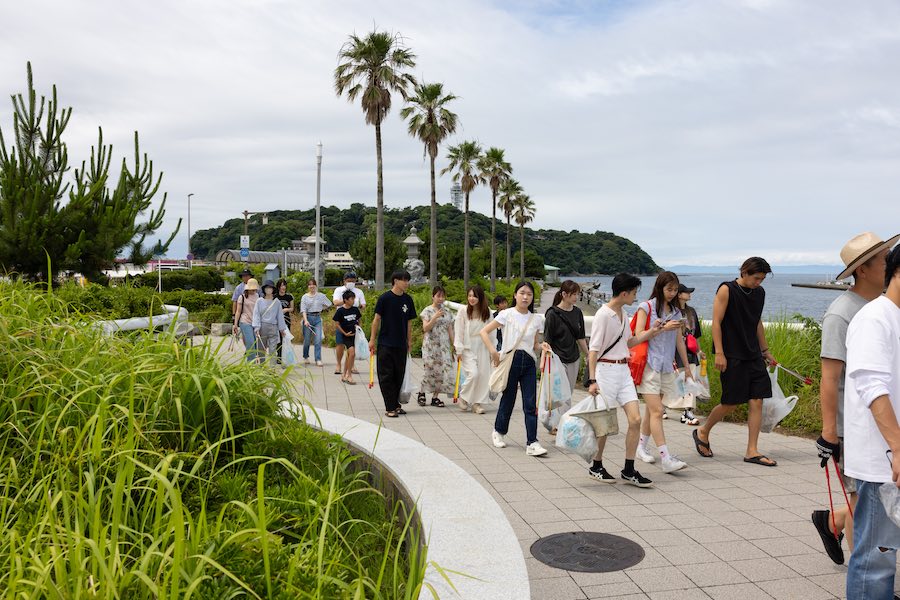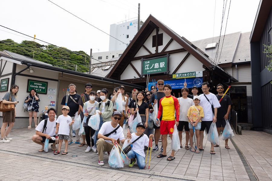 参加者は江の島海水浴場協同組合、江ノ島電鉄株式会社、カリフォルニアジェネラルストア、岩崎学園、NAMIMATIの有志たち。