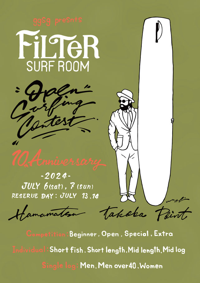 プロサーファーたちが参戦できるクラスがあることで毎年大盛り上がりと話題の”ggsg FiLiTeR SURF ROOM 2024”が今年も浜松で開催された!