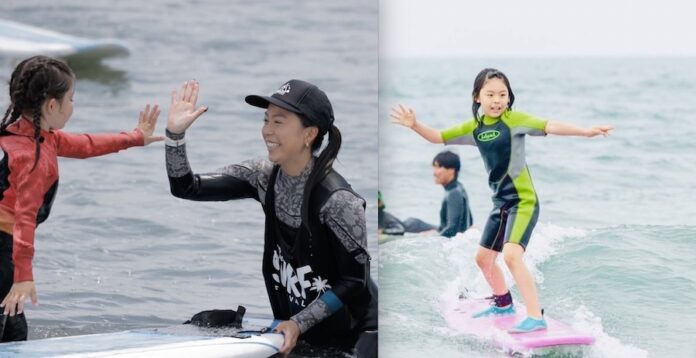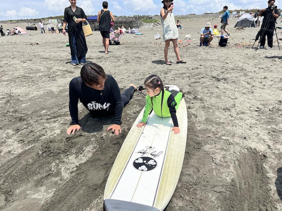 “子供たちの初めてのサーフィンを応援する”をテーマに、プロサーファーの中村光貴、小林直海、水野亜彩子をはじめトップアマ小川拓、さらにはMABO ROYAL、NEO SURF、Shop My Crewといった地元サーフショップのローカルサーファーたちがインストラクターをつとめ、陸でのレッスン、海でのサーフィン体験、海のルール&マナー講座まで体験可能となっており、レッスンは朝8:00から、9:30から、11:00からの3回に渡って行なわれる予定。