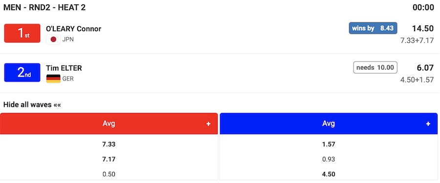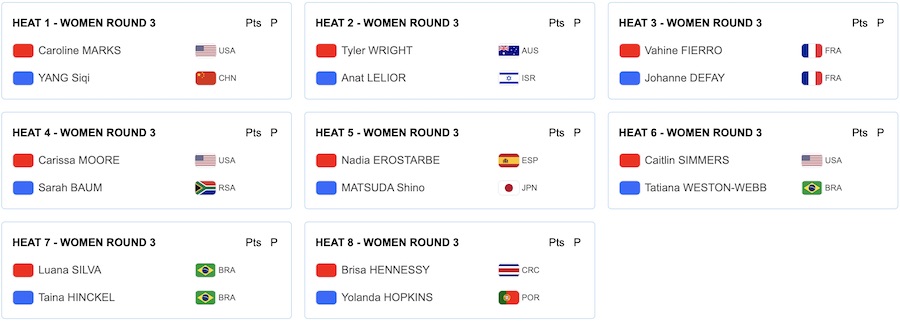 日本時間の朝9時の現時点ではWOMENSのラウンド3のヒート表のみ発表されており、松田詩野は迎えるラウンド3のヒート5でスペイン代表のNadia Erostabeと対戦予定となっている。
