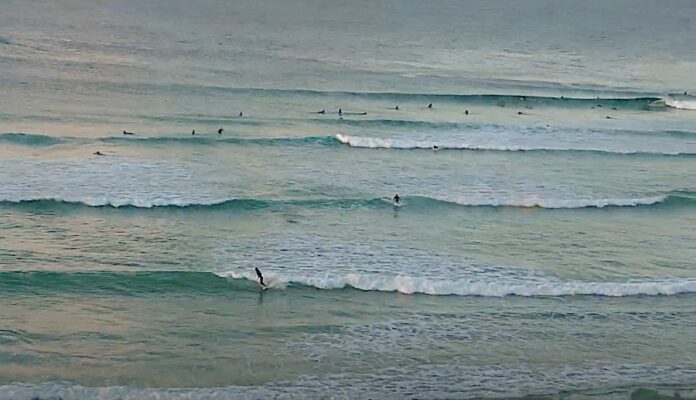 そんな彼が、お気に入りのHammo surfboardsのMenace Twinモデル(5’6” × 19 3/8” × 2 7/16”)のツインスタビ・フィンセッティングで、仕事を終えた夕方の海に飛び込み、300mの超ロングライドをメイク!
