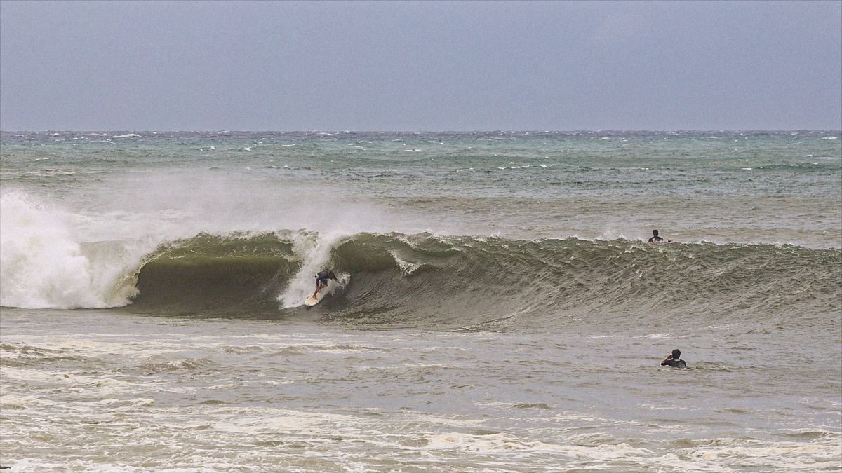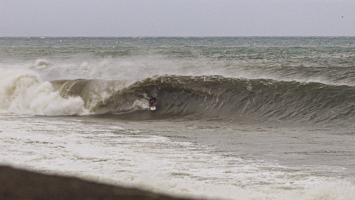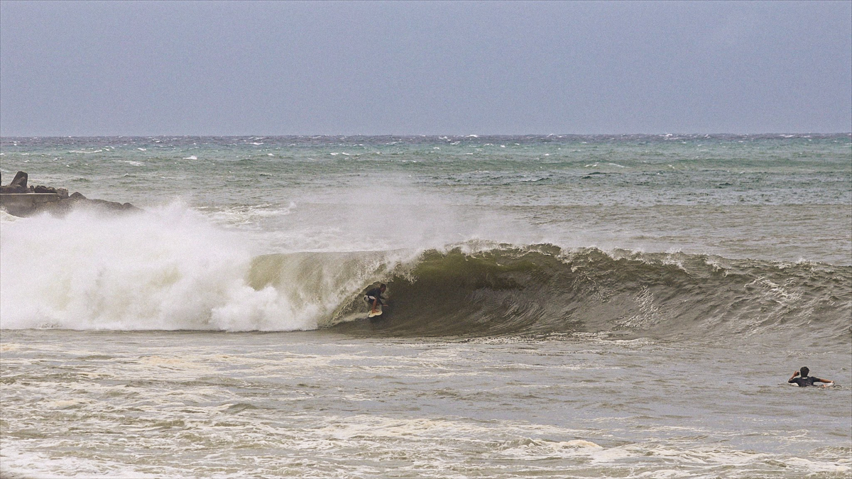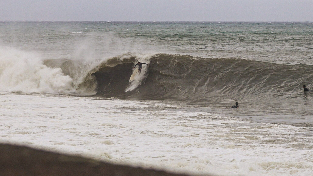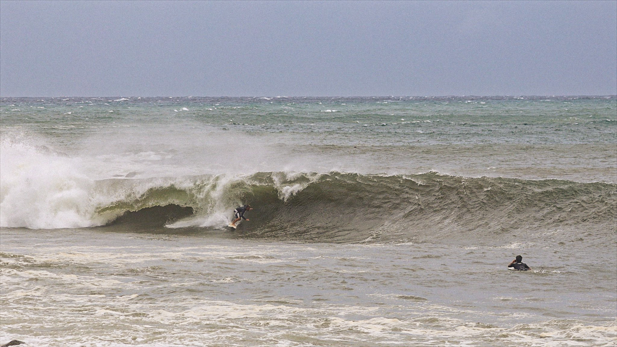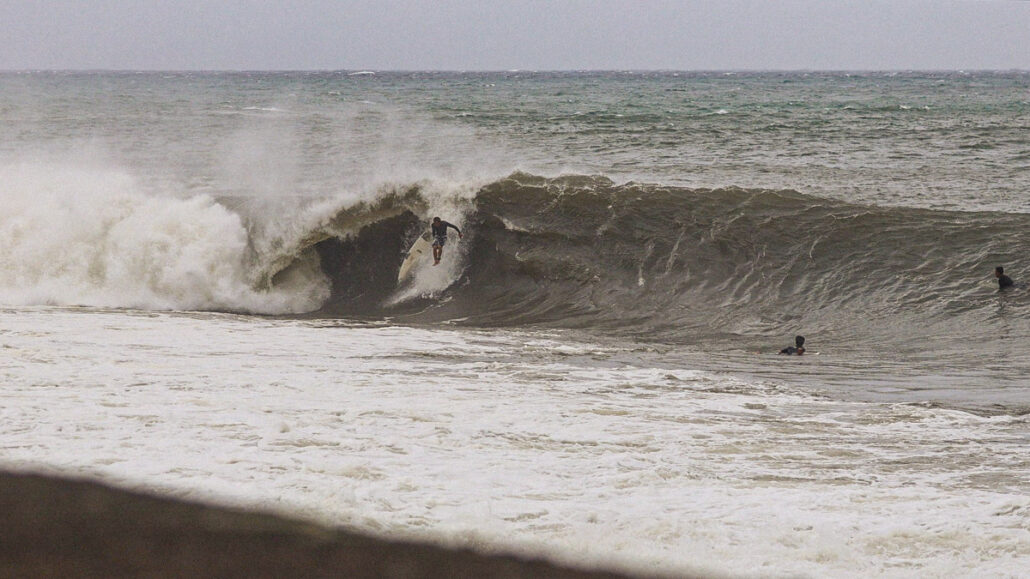 しかし、それでもなおサイズが足りない感は否めず、セットはぼっくりとチューブが口を開けているが、本当に数少ないセット以外は岸に打ち上げられてしまうほどインサイドでやはりサーフィン不可能であるかのように思えた。