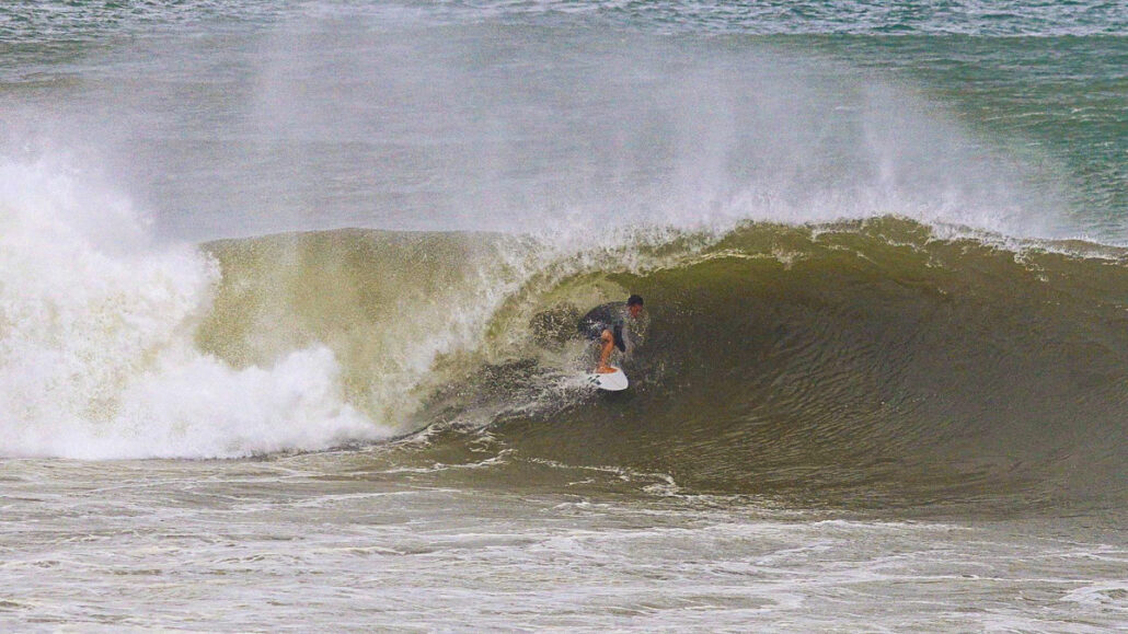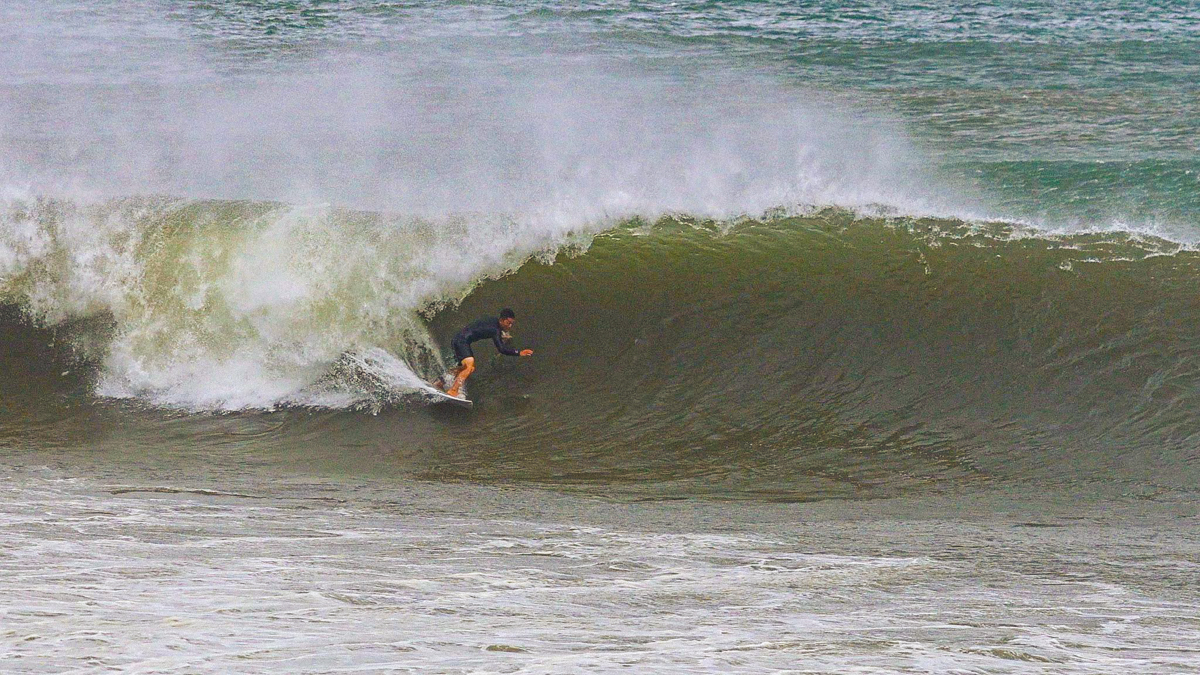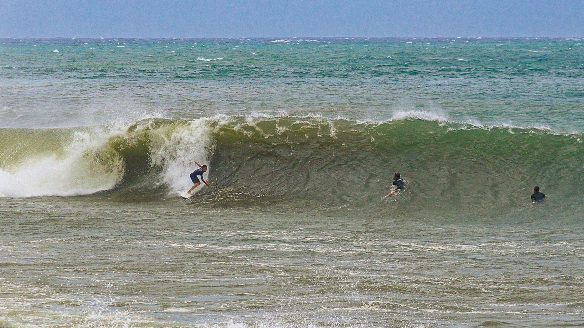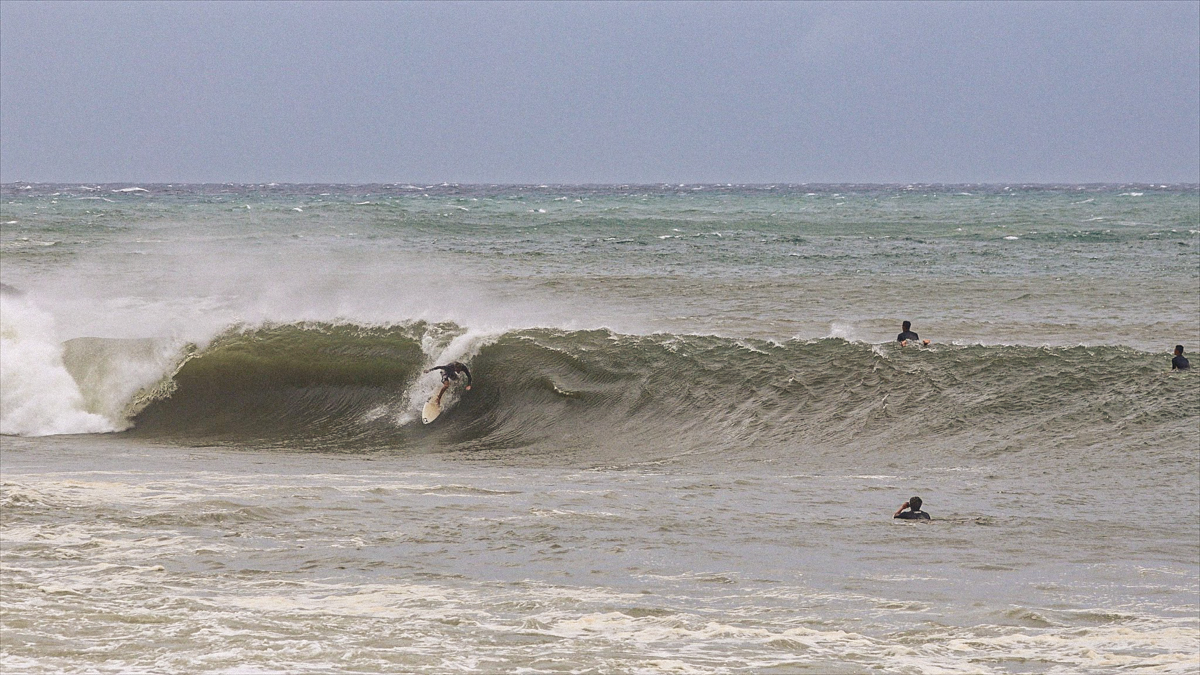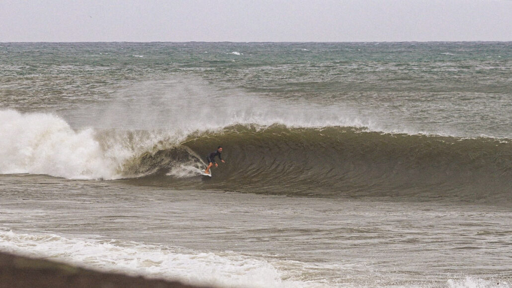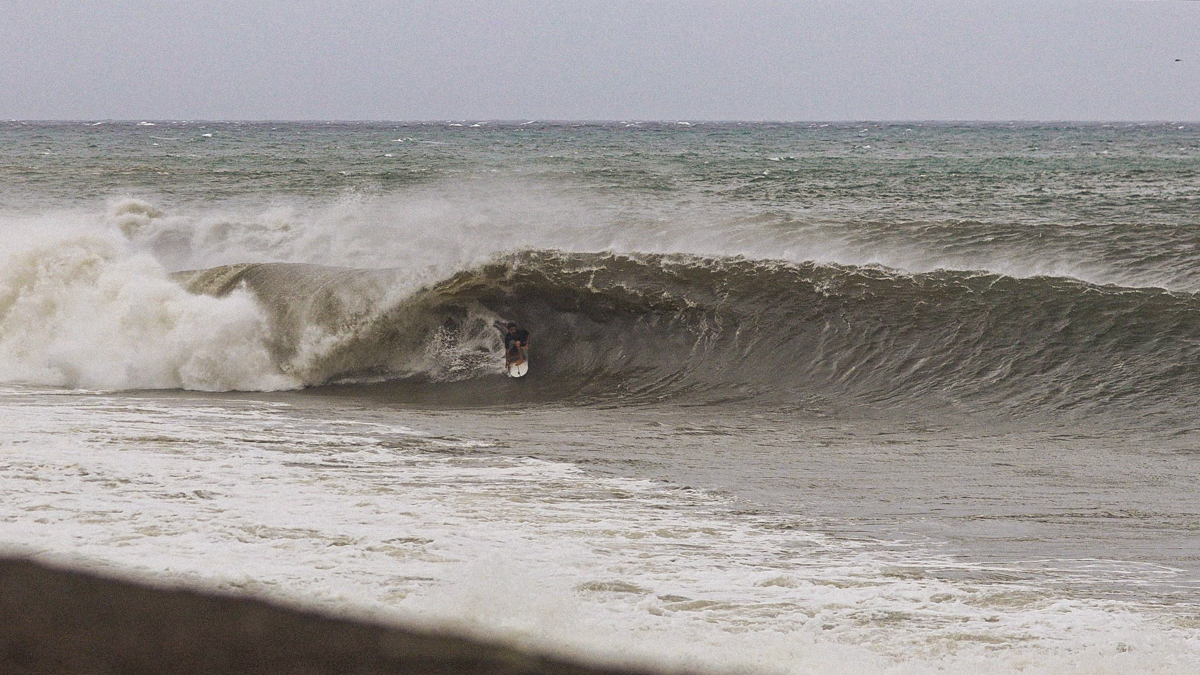 しかし、それでもなおサイズが足りない感は否めず、セットはぼっくりとチューブが口を開けているが、本当に数少ないセット以外は岸に打ち上げられてしまうほどインサイドでやはりサーフィン不可能であるかのように思えた。