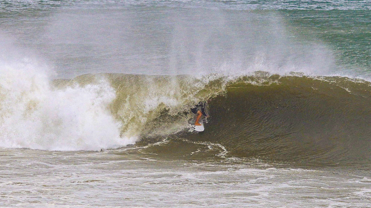 先ほどフリーフォールした奥のポジションから、しかし今度は見事なレイトテイクオフからそのままチューブに突入していき、長い時間バレルの中を走り続けたものの、コーナーのセクションで高速チューブとなりアイランドプルアウトでフィニッシュ。