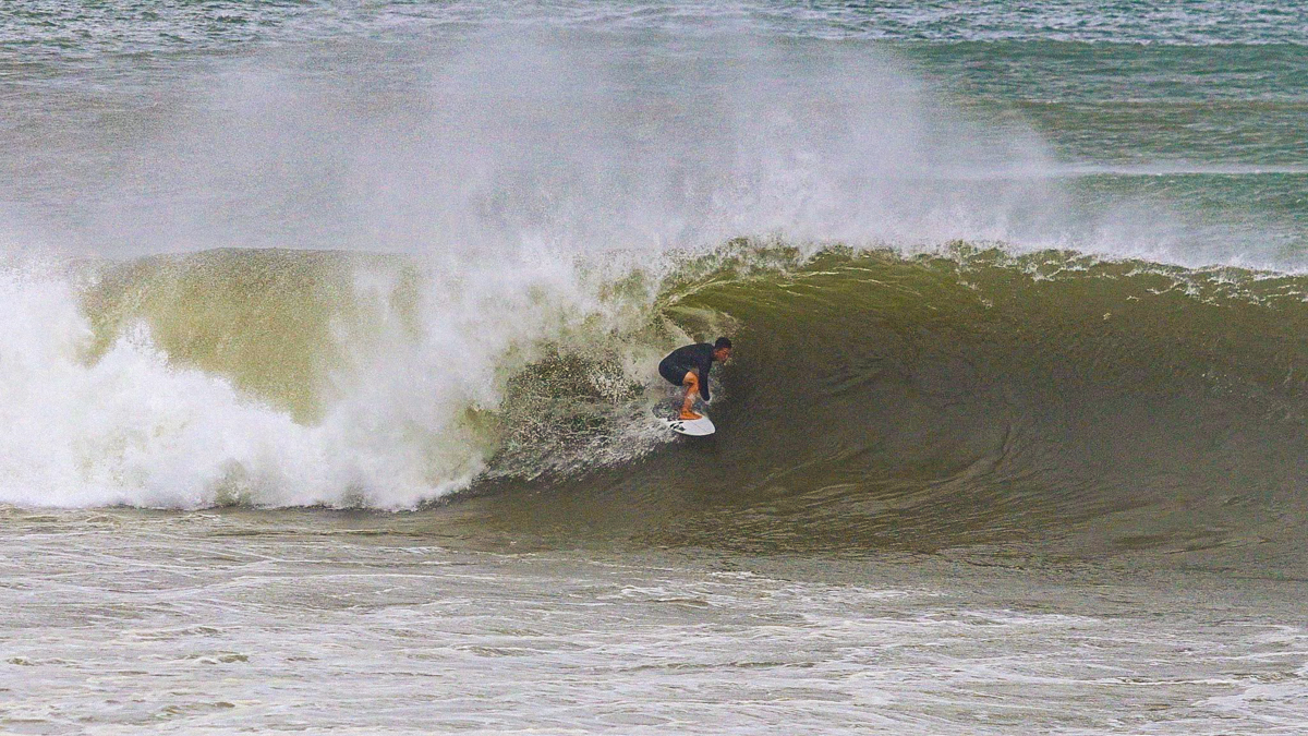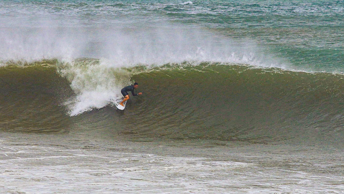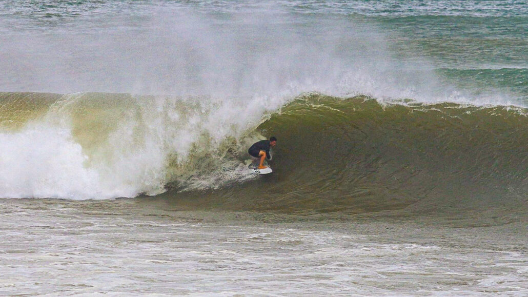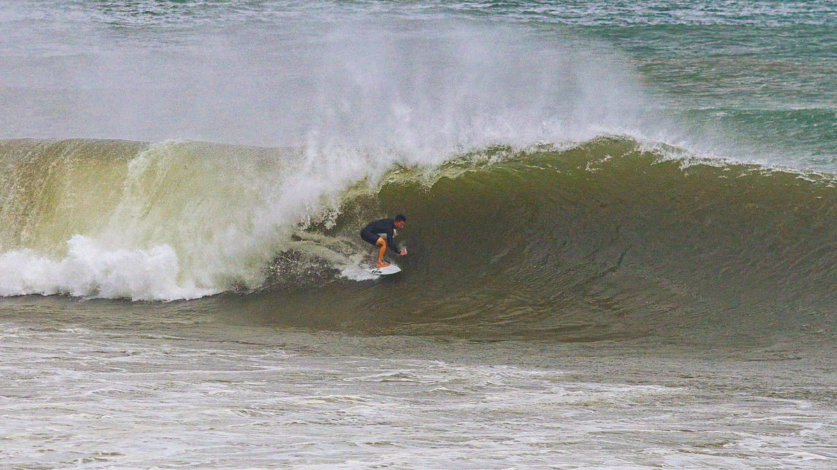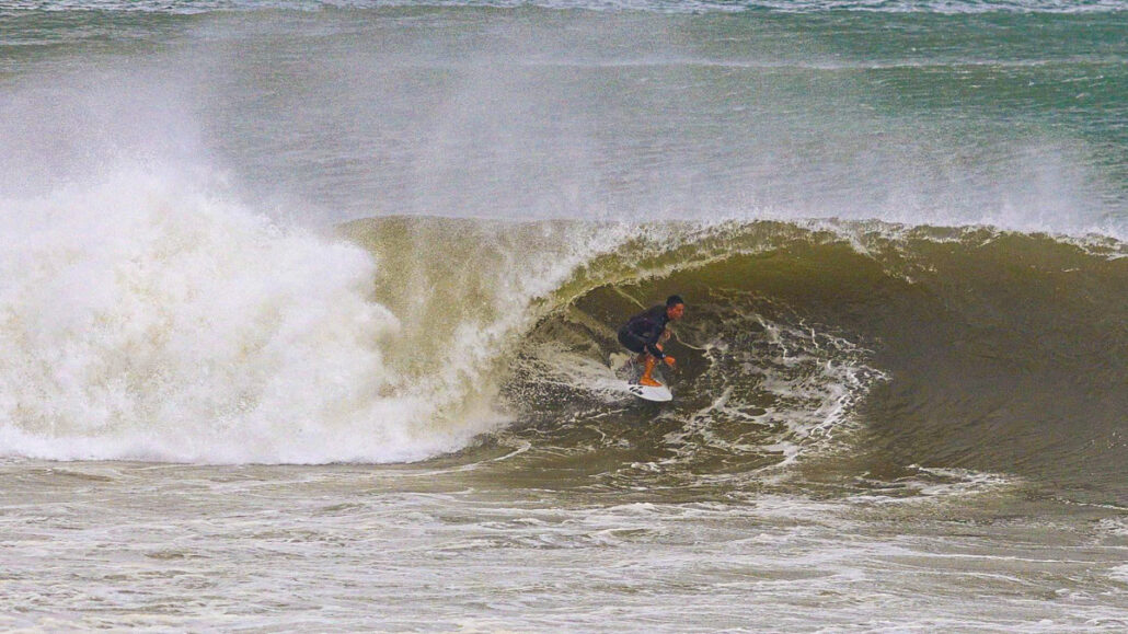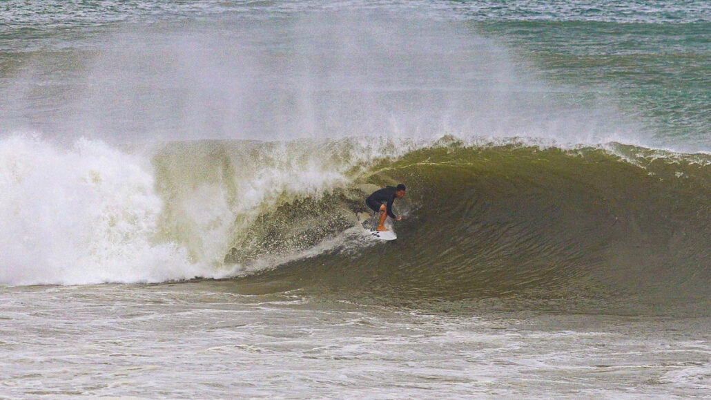 そうこうしているとまたしても村上舜が、今度は少し右側に入ってきたセットの波を掴み、浅めながらもチューブをいとも簡単そうにメイクしてくる。