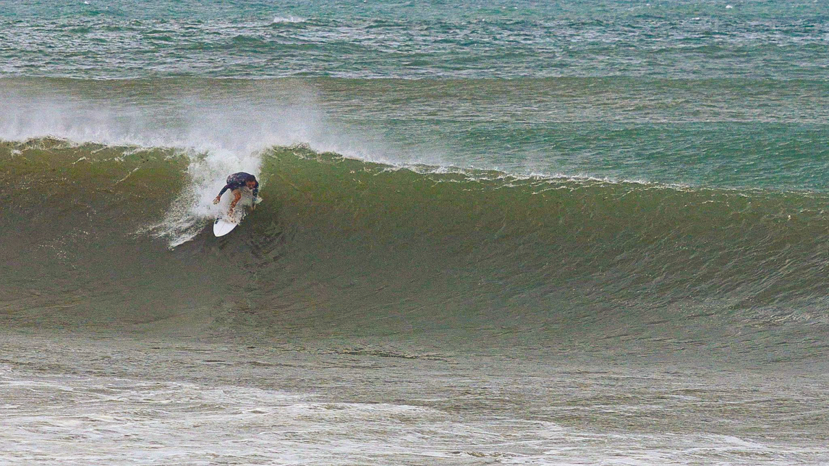 そんな中、沖に再び数本セット入り、その波を脇田泰地が掴んだ。