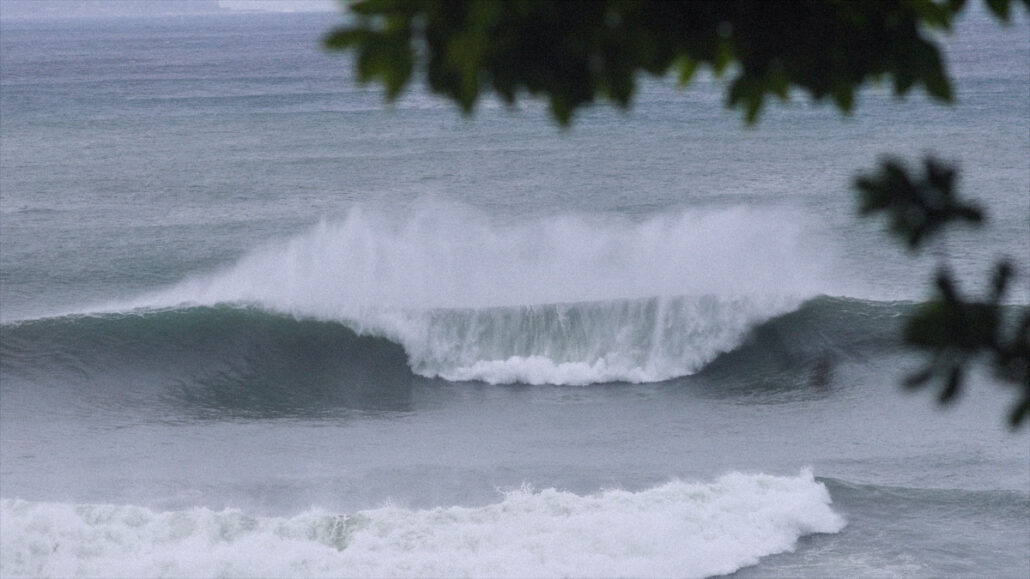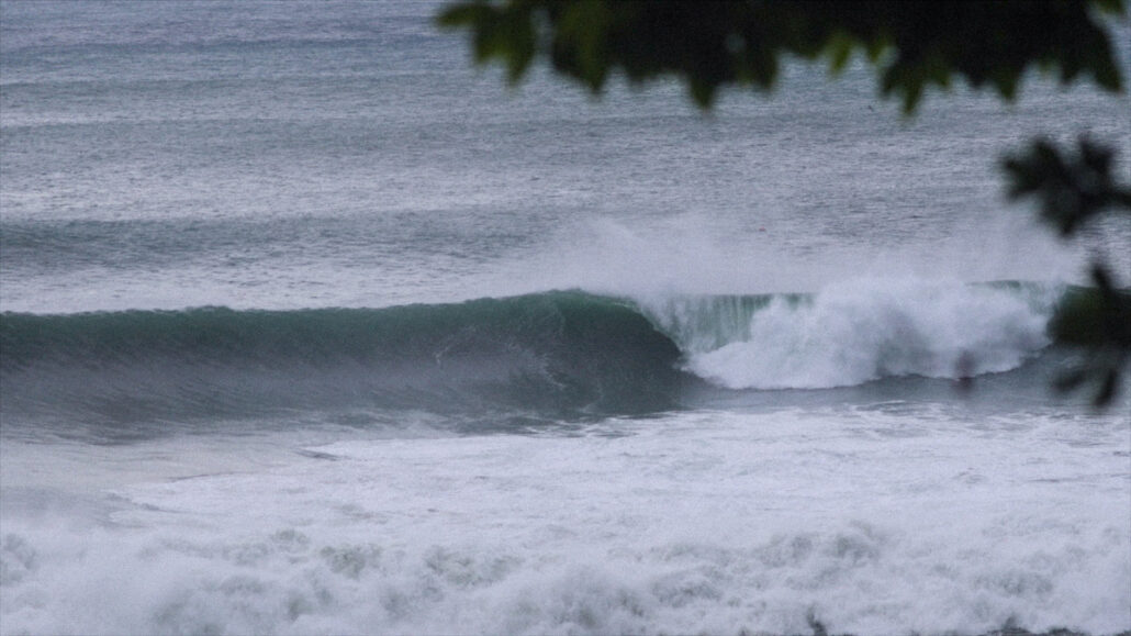 何人も寄せ付けない異様な雰囲気を発しながらも、悪魔の誘惑の如く美しいAフレームで割れていく無人の波。