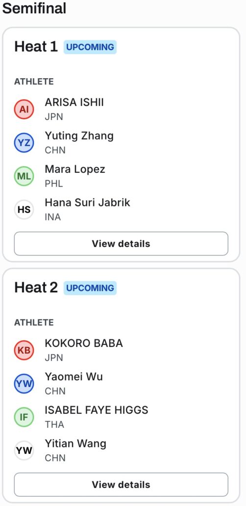 18歳以下女子U18 Girlsでは馬場心と、オープンウィメンズとダブルエントリーの石井有沙がセミファイナルまで駒を進めている。