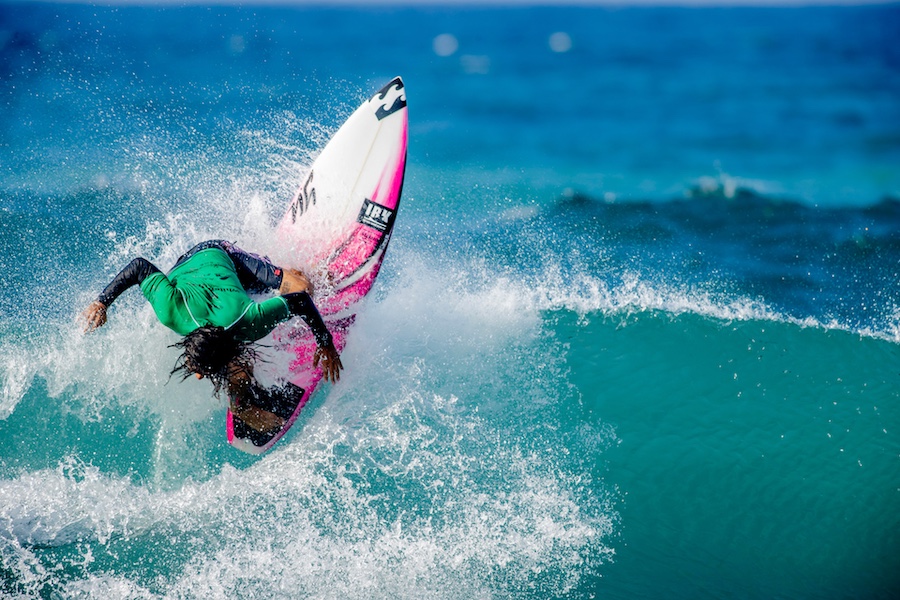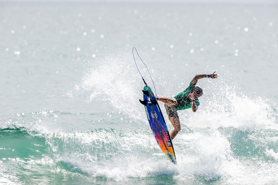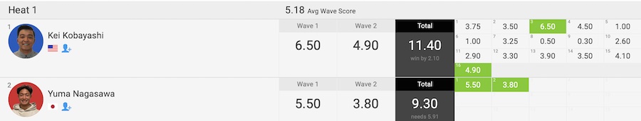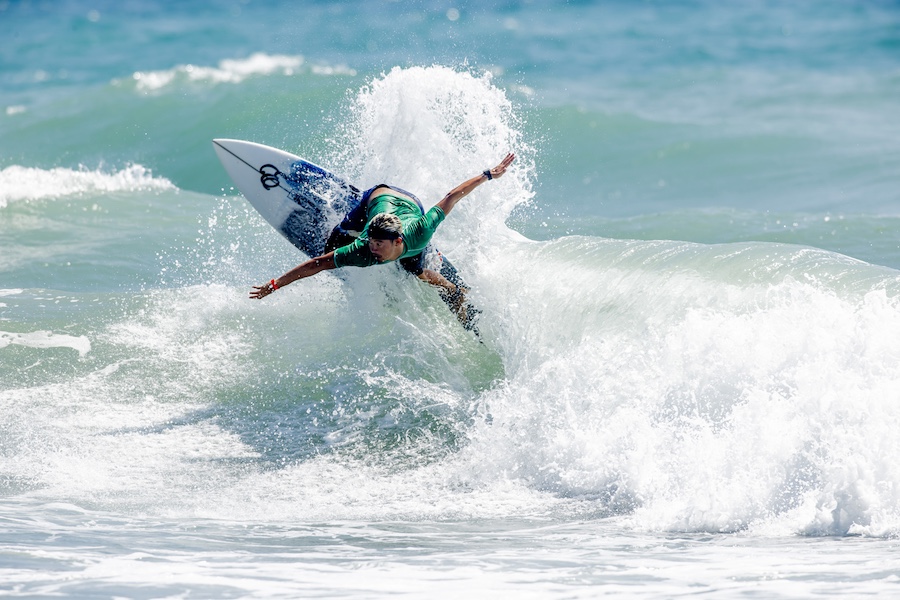 波数が少なくなってきているのを察知したかのように前半から波を掴んでスコアを重ね、勢いに乗っていた長沢侑磨に歯止めをかけた小林圭。この大会の直前にはノースカロライナで開催されたQS1000では3位入賞を果たし、今回のQS3000では優勝という結果を残した。Kei Kobayashi. Photo by Shuji Izumo / WSL.