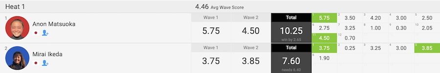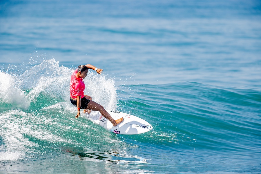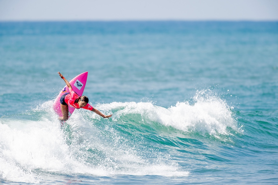 プアなコンディションでも質の高い世界仕込みのターンでスコアを伸ばし、ファイナルでもテンポよく波を掴み、順調に優勝をさらった松岡亜音。Anon Matsuoka. Photo by Shuji Izumo / WSL.