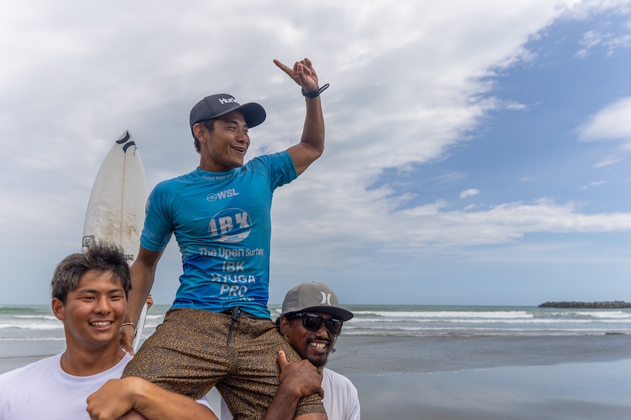 MENS QS3000は田中大貴が自身初となるQS優勝を決め、WOMENSは都築虹帆が、プロジュニアMENSはBronson Maydiが木崎浜での”宮崎プロ”に引き続く宮崎シリーズ連覇を遂げ、プロジュニアWOMENSは池田美来が優勝を飾った!