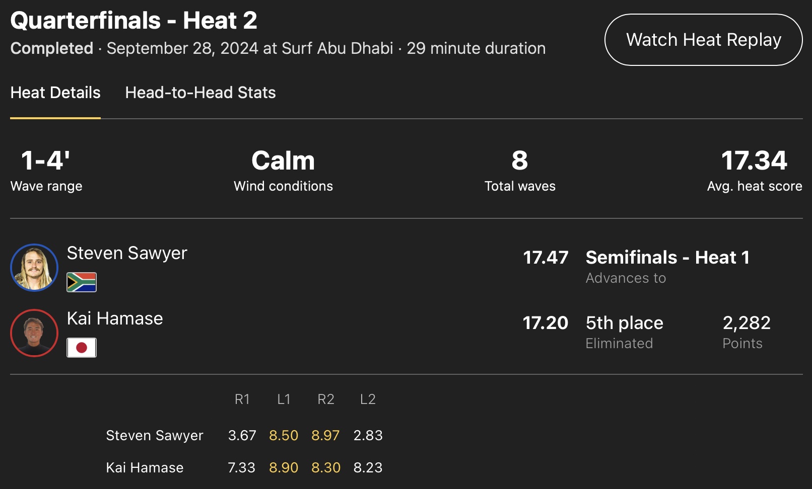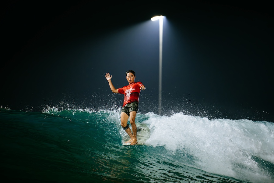 HUDAYRIAT ISLAND, ABU DHABI, UNITED ARAB EMIRATES – SEPTEMBER 28: Kai Hamase of Japan surfs in Heat 2 of the Quarterfinals at the Abu Dhabi Longboard Classic on September 28, 2024 at Hudayriat Island, Abu Dhabi, United Arab Emirates. (Photo by Beatriz Ryder/World Surf League) チューブ、ノーズ、ソウルアーチと世界トップレベルに引けを取らないパフォーマンスで素晴らしいライディングを連発した浜瀬海。世界での経験が今後もさらに彼を急成長させていくに違いない。