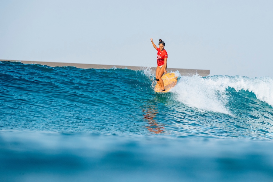 HUDAYRIAT ISLAND, ABU DHABI, UNITED ARAB EMIRATES – SEPTEMBER 28: Natsumi Taoka of Japan surfs in Heat 7 of the Opening Round at the Abu Dhabi Longboard Classic on September 28, 2024 at Hudayriat Island, Abu Dhabi, United Arab Emirates. (Photo by Damien Poullenot/World Surf League)