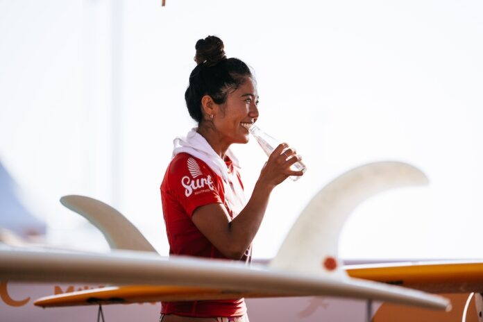 HUDAYRIAT ISLAND, ABU DHABI, UNITED ARAB EMIRATES - SEPTEMBER 28: Natsumi Taoka of Japan prior to surfing in Heat 7 of the Opening Round at the Abu Dhabi Longboard Classic on September 28, 2024 at Hudayriat Island, Abu Dhabi, United Arab Emirates. (Photo by Beatriz Ryder/World Surf League)