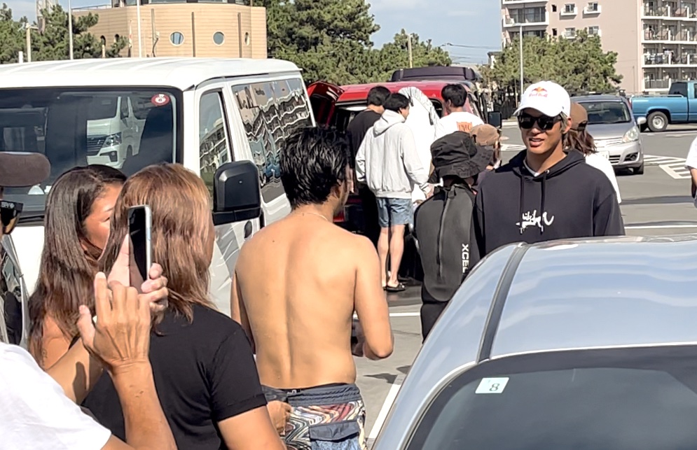 五十嵐カノアが鵠沼に来る噂を聞きつけ、茅ヶ崎から自転車で来て朝からずっとカノアの登場を待ち続け、念願のサインをゲットした茅ヶ崎キッズ。DA C-BOYZ.