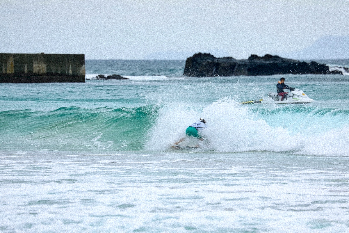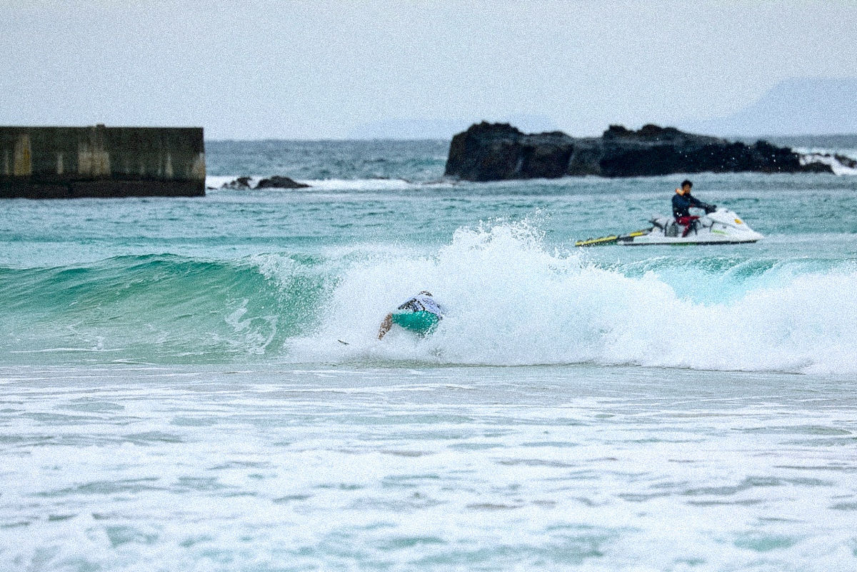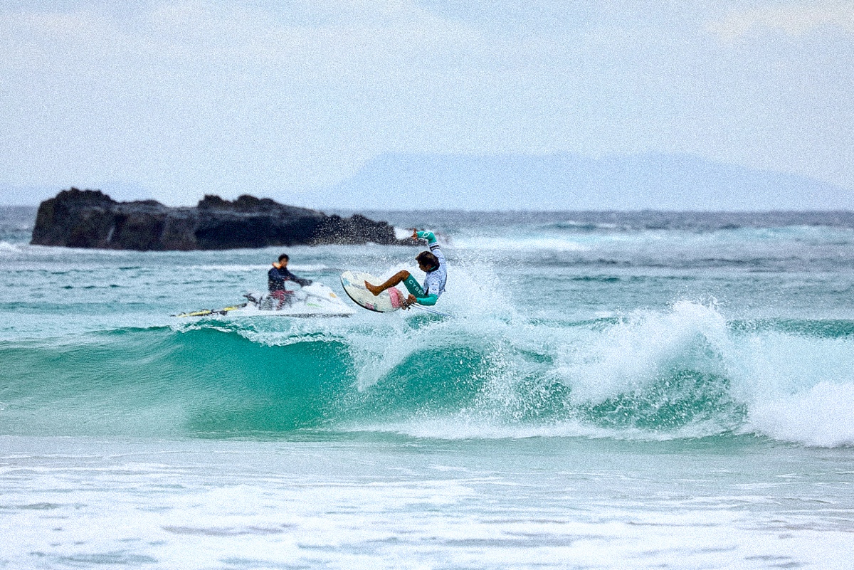 小振りながら大会期間中を通して波が続いた中、MENSではカリフォルニア出身の小林桂が、WOMENSは中塩佳那が、シニアプロは佐藤千尋が優勝を遂げたそのリポートをお届けする前に、ベストシークエンスとなった小林桂によるフロントサイド・サンクレメンテ・エアリバースのシークエンスをお届け!!