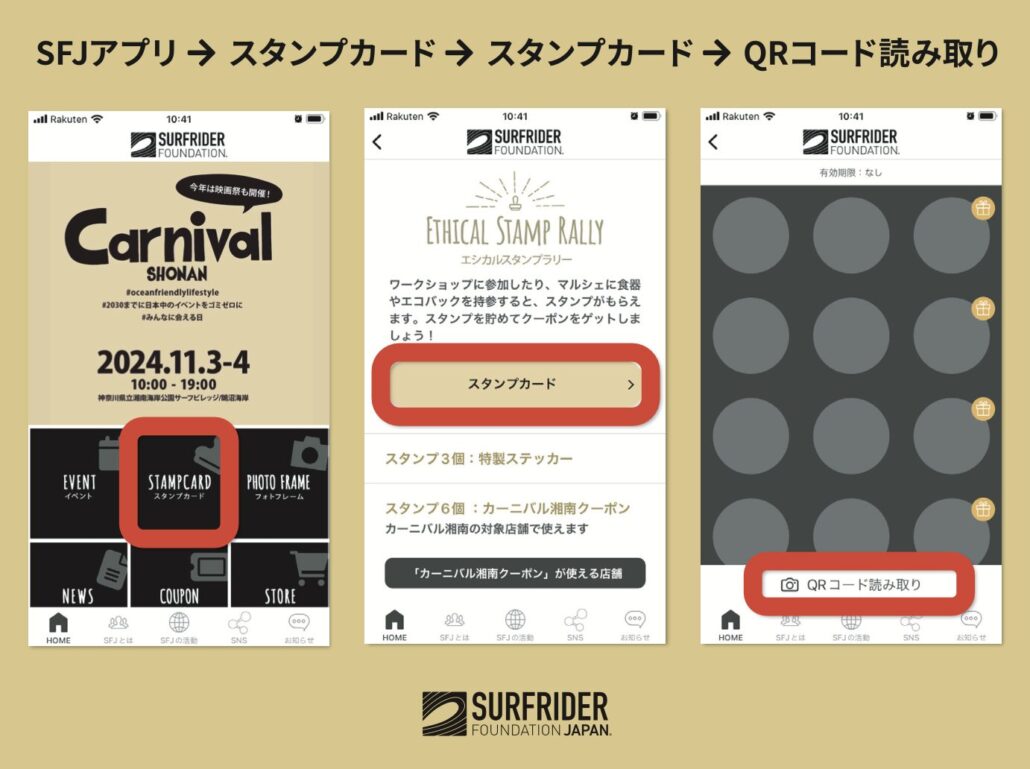またサーフライダー・ファンデーション・ジャパンのアプリをダウンロードして、イベント中に12個のスタンプをコンプリートできたら素敵なプレゼントがもらえるエシカルスタンプラリーも行われるなど、楽しめるコンテンツが盛りだくさんとなった国内最大規模の本格的なサーフフェス”カーニバル湘南”、11/3(日)から11/4(月)文化の日の2日間は、鵠沼サーフビレッジへGo!
