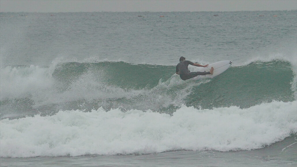 その模様は後ほどお伝えするとして、今回は湘南某所で密かに繰り広げられたセッションより、普通ならばロールインやエアなどでフィニッシュしたくなるような掘れたエンドセクションをさらにエクセレントなフィニッシュとして仕上げるフロントサイド・フルパワー・レイバックのシークエンスをお届け!