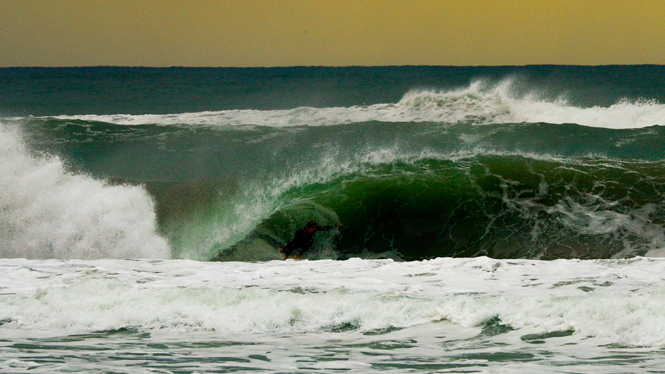 強烈なカレントの中でもポジションをキープできるパドル力と経験値が問われるコンディションの中、静岡エリアを代表するプロサーファー樋口賢が魅せてくれたバックサイド・ロングチューブのシークエンスをお届け!!