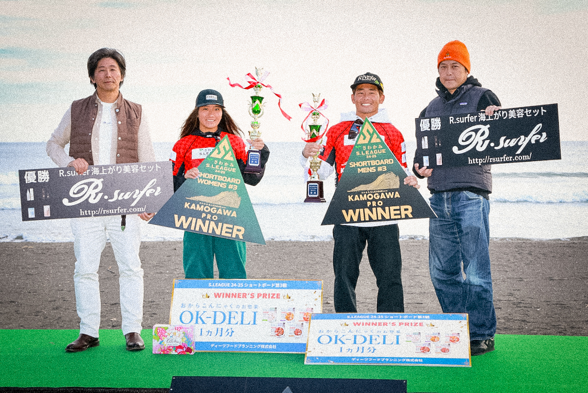日本屈指のサーフタウン鴨川のマルキを舞台に開催されていたSリーグ24-25第3戦”さわかみ鴨川プロ”は、オフショアでセット胸前後のグッドコンディションに恵まれた11/23(土)にMENS、WOMENS共にファイナルまでの全スケジュールを消化。