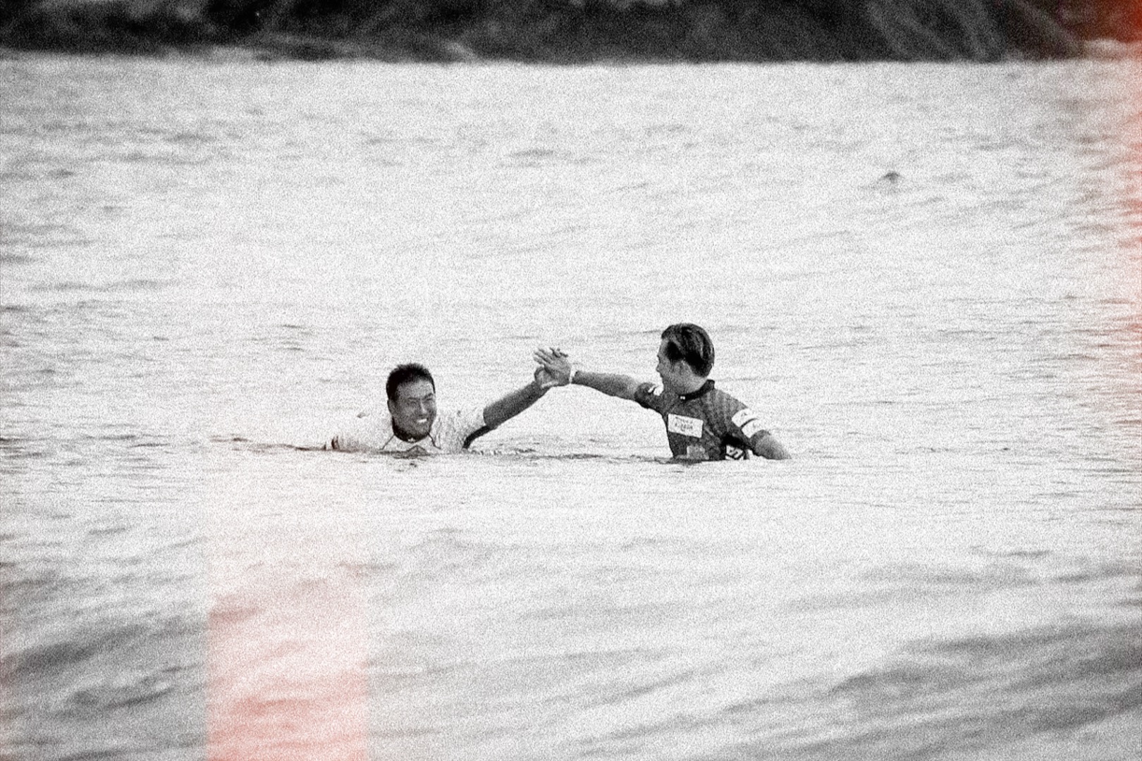 日本中のファン待望のオリンピック日本代表選手2名によるドリームマッチがファイナルで実現となったドラマチックなSリーグ第3戦鴨川。幼い頃から同じ一宮で同級生の親友でライバルとして育った彼らが、また新たに日本のプロサーフ史に刻まれる名勝負を魅せてくれた。酸いも甘いも噛みわけてきた2人が、勝ち負けを超越してお互いを讃え合う永遠の一瞬を捉えた1枚。 Reo Inaba & Hiroto Ohhara.
