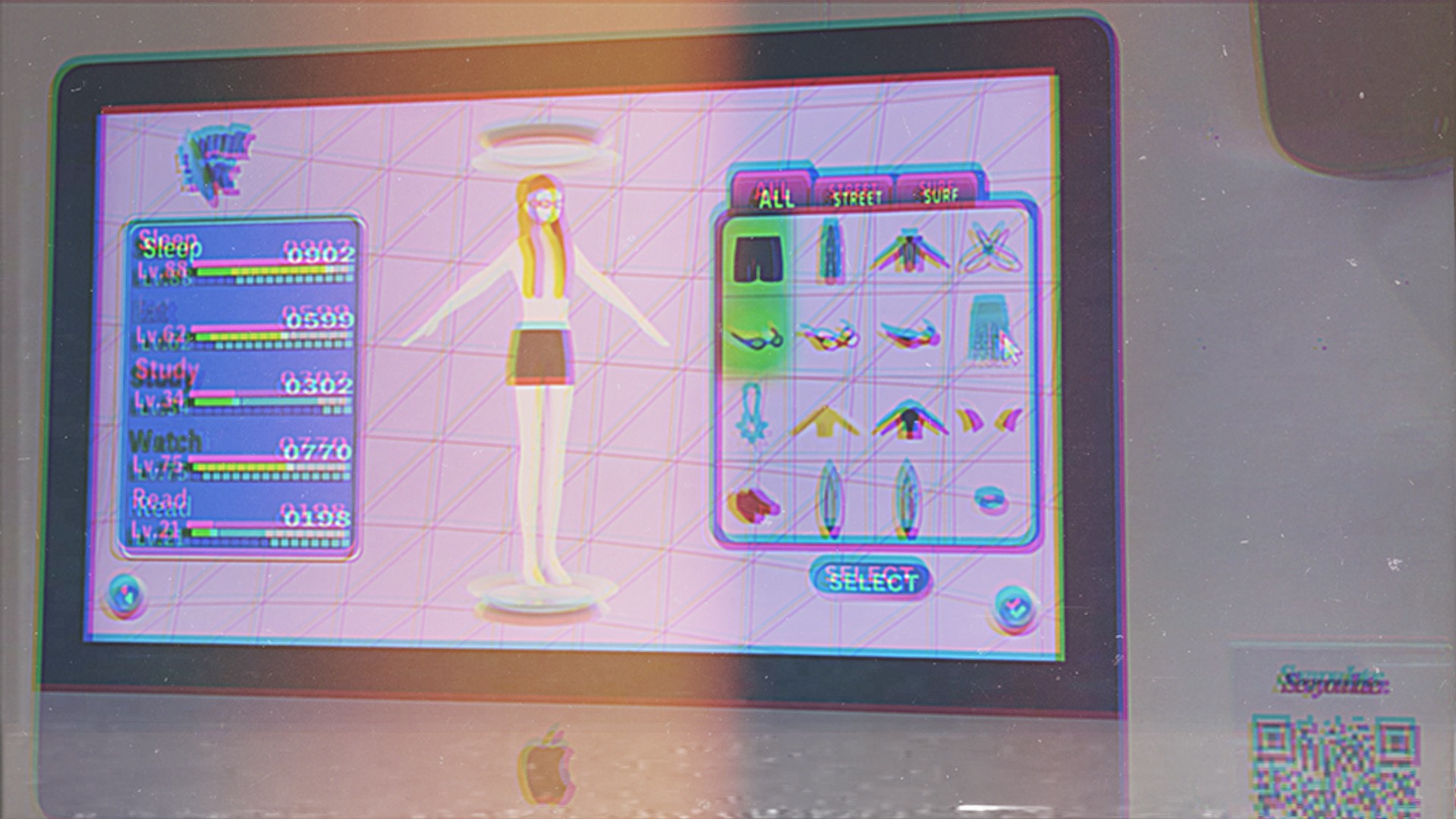 2023年にルーキー・オブ・ザ・イヤーを獲得したにも関わらず、2024年は突如コンテストシーンから姿を消した斎藤祐太郎は、現在CGクリエイターの技術を身につけるべく週に1回千駄ヶ谷のUNDER Rでバイトしながら都内の専門学校に通っているという。上の写真にあるのは、そんな彼が架空のサーフィン・ゲームのプロフィール・ホーム画面を想定して作り出したアート作品。サーフボードやウエットスーツなどのハードギアだけでなく、アパレルなども選べるようになっているのは独自の感性でファッションにもこだわる齋藤祐太朗ならではと言える。