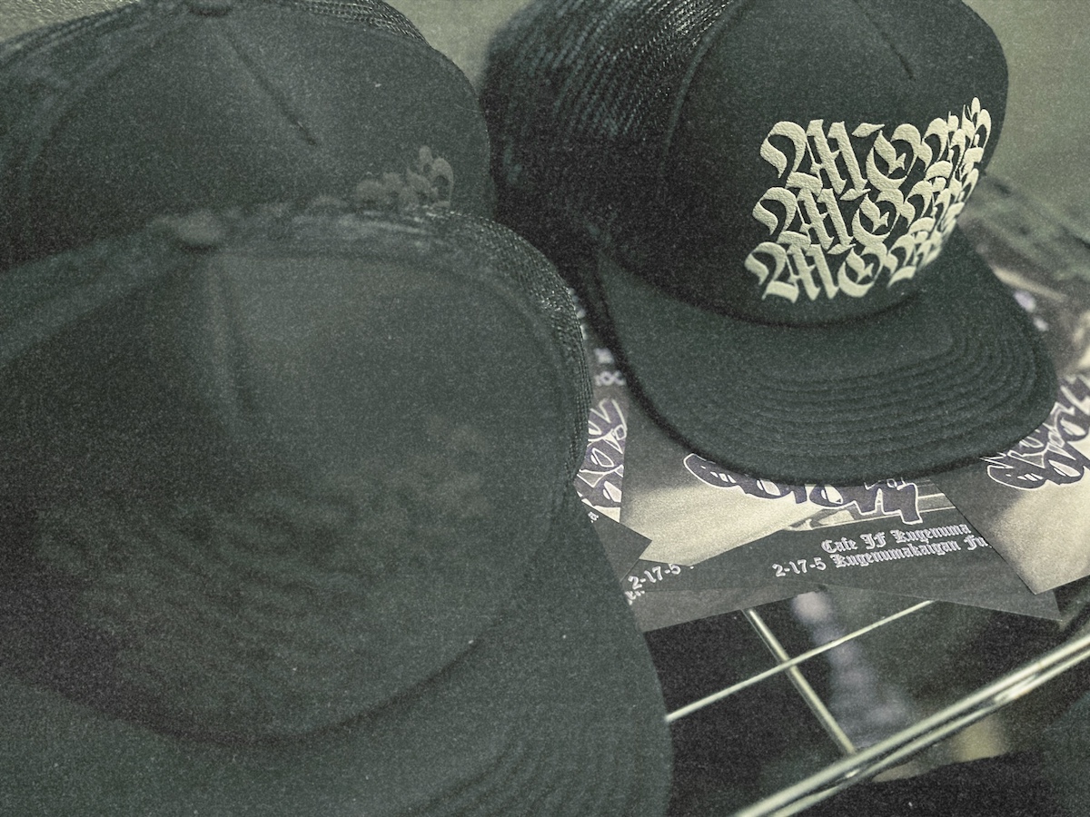 会場ではMOBBのメッシュキャップ、Tシャツ、パーカーといったここでしか手に入らないオリジナルグッズも販売。