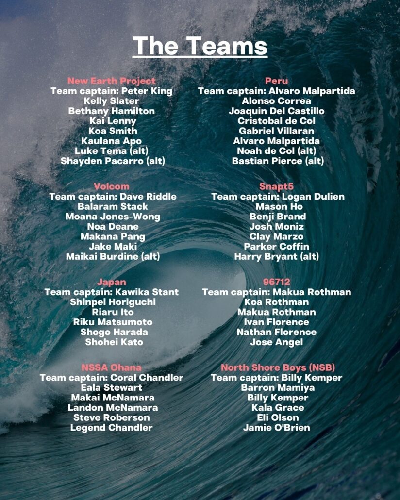 他の選手たちと競い合う通常のコンテスト形式とは異なり、チームメイトと一緒に同じ時間に海に入ることで必要以上に波を奪い合うことなく波をシェアできるヒートを数日間に渡って行ない、その中で出揃ったベストスコアのトータルでチーム優勝と個人優勝を決めるという、アロハスピリッツが落とし込まれた独自コンテスト形式を採用するこの世界的ビッグイベントに、日本からは堀口真平、伊東李安琉、加藤翔平、松本浬空、原田祥吾の5名がチームジャパンとして参戦。