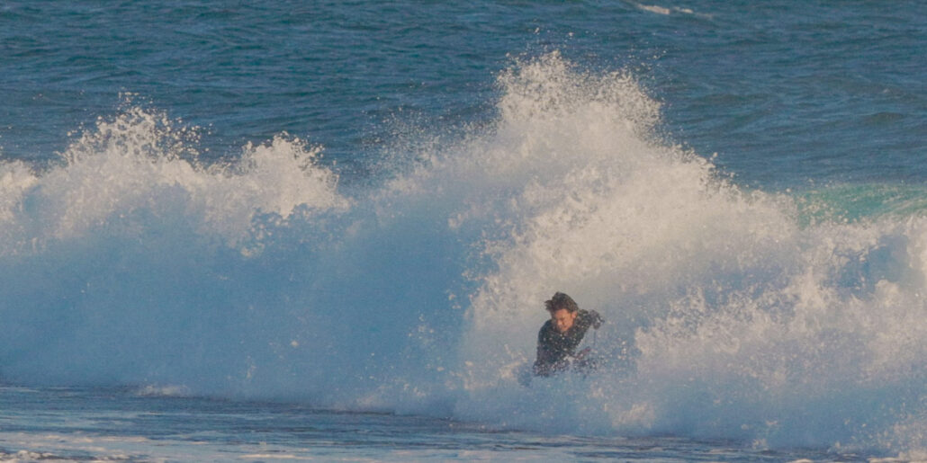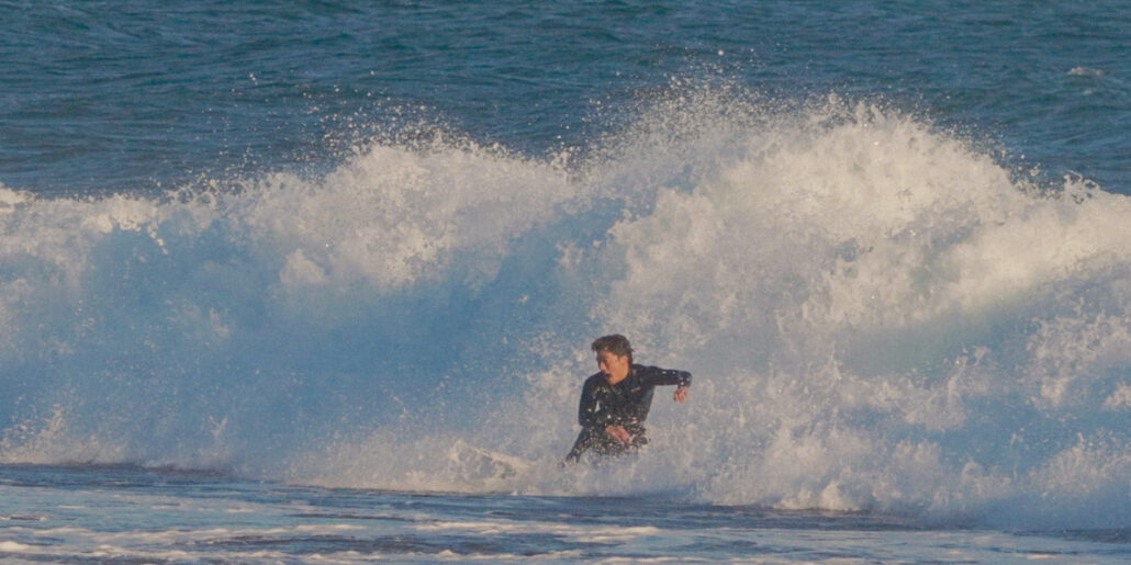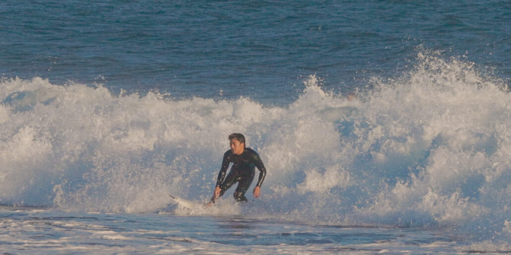 西高東低の冬型の気圧配置が続いて南西の強い風が吹き、オンショアながらサイズのある波が続いている湘南エリア。