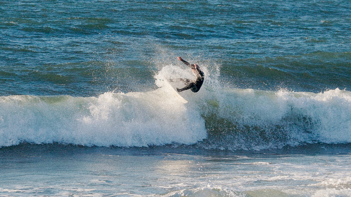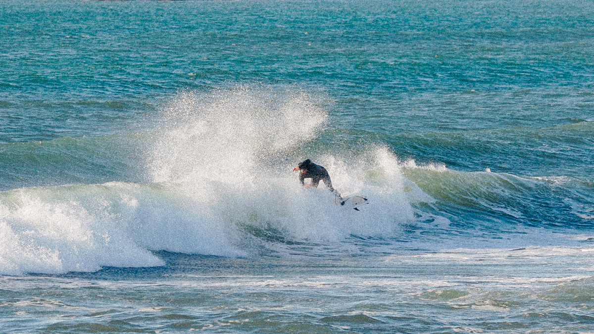 日の出前より波チェックに向かい、湘南イーストサイドのリーフエリアを134を走りながら期待したほどまとまりないコンディションであることを確認しつつ、まだサイズが残っていたので気になるサンドバーを数箇所チェックしたもののイマイチなので、冬に地形が決まりやすい茅ヶ崎のとあるブレイクへ。