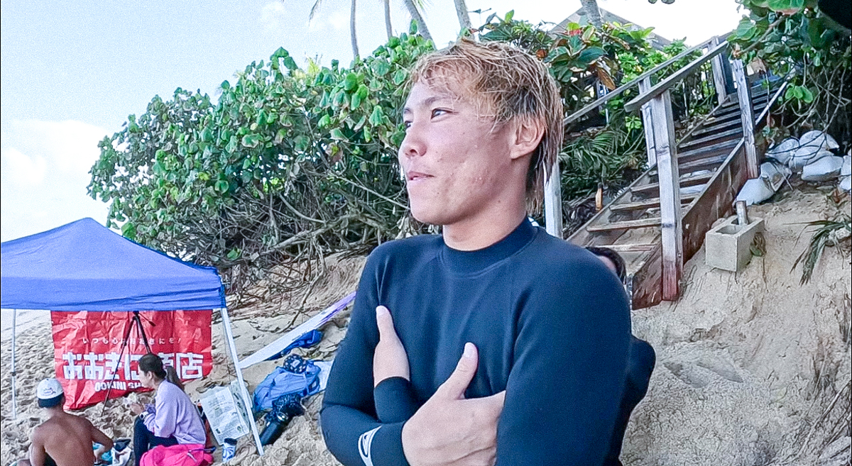 初日にエクセレントなチューブをメイクしながらも後頭部をリーフに強打して2日間の休養を余儀なくされてもなお、最後の最後でさらにそれを上回るエクセレント・ライドをパイプで決めて個人順位4位に輝き、チームジャパンの初優勝に大きく貢献した原田祥吾。
