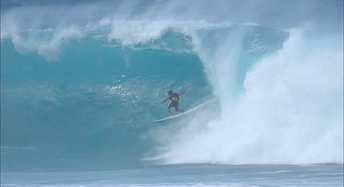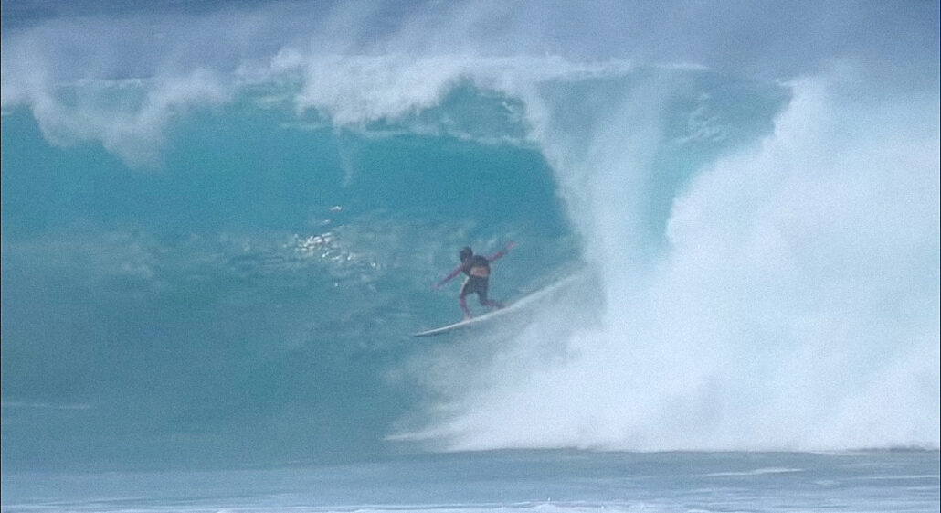 パイプでも素晴らしいバレルを披露しただけでなく、オンショアをくらったサードリーフ全開の危険なナーリー・コンディションにおいて、その日選手の誰もが手を出すことすらできなかったバックドアに攻め込むクレイジーぶりで強烈なインパクトのある爪痕を残した松永健新。